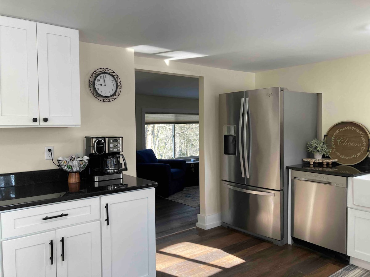 Welcome to The Saco River Farmhouse! This newly renovated riverfront retreat has everything for a perfect White Mountains getaway. Just 10 minutes from North Conway’s restaurants, shops, and outlets. The open layout offers a spacious, inviting atmosphere for relaxing with loved ones. In summer, float from your private Saco River access or relax on the back deck. In winter, you're minutes from ski resorts and snowmobile trails. In the fall, enjoy breathtaking foliage and crisp mountain air!
