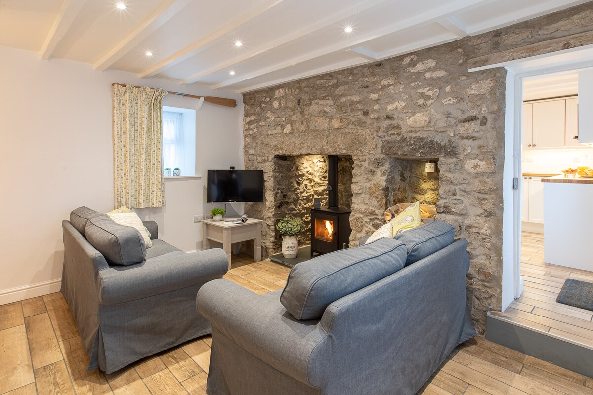 (10% DISCOUNT 7 DAYS+) A lovingly refurbished characterful and romantic one bedroom cottage with an edge of luxury in the heart of the Snowdonia National Park. Amazing views of the beautiful Cardigan Bay and the Lleyn Peninsula in close proximity to award winning beaches. Set in peaceful countryside, full of original features. Enjoy cosy evenings in front of the dual aspect wood stove or soaking in the extremely relaxing wood burning hot tub whilst taking in the views or gazing at the stars.