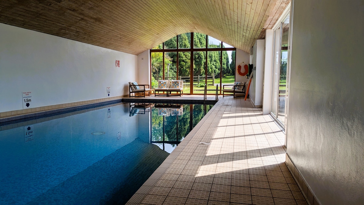 Family-friendly North Wales cottage: Indoor heated pool + private patio hot tub with panoramic Snowdonia views. Sleeps 4 in this dog-friendly cottage with complete single-level access. Swim year-round whatever the weather, soak under the stars, explore hiking trails from your door. 24/7 pool access shared only with one other cottage (max 9 people on site), EV charging, one-acre gardens, workspace for remote workers. Bodnant Garden 3 miles, Betws-y-Coed & Conwy 9 miles.