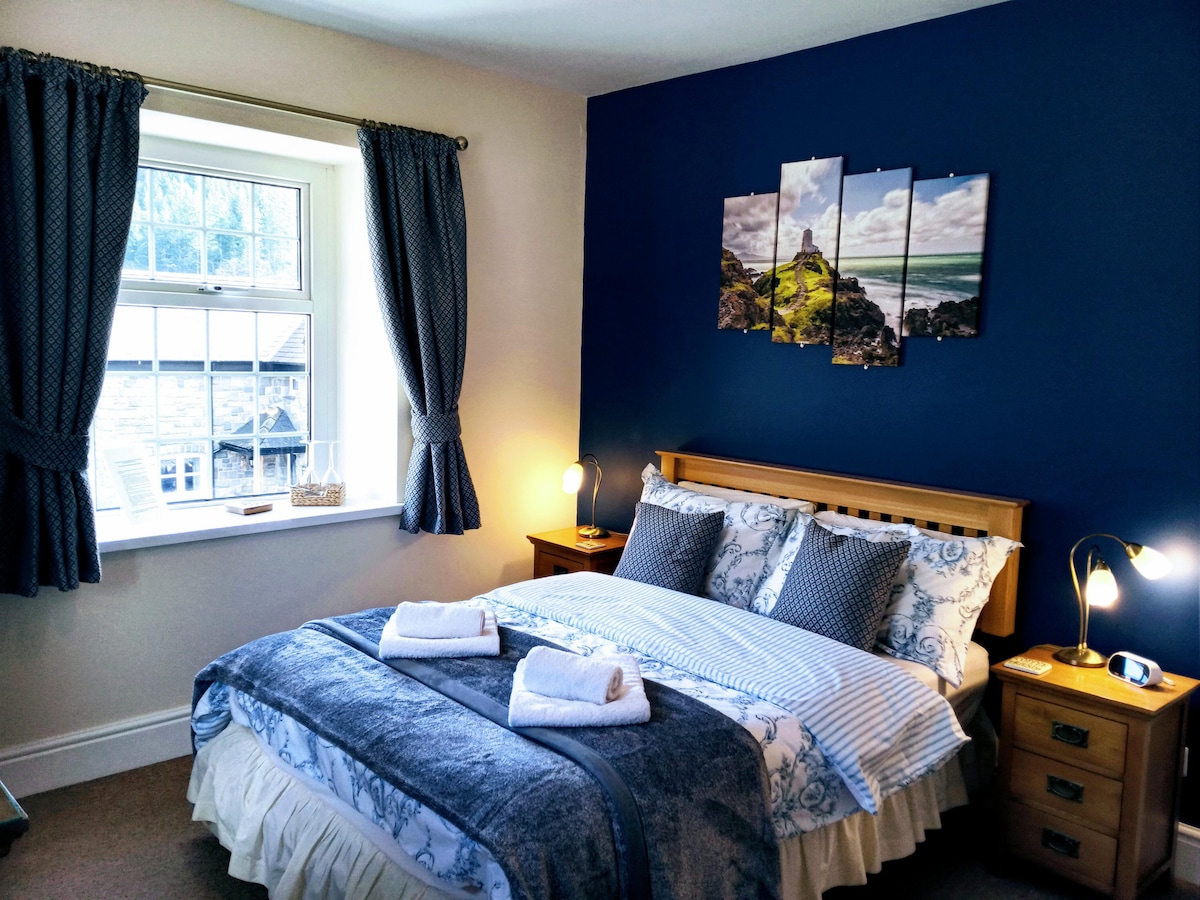 Ystafell Las (The Blue Room) is a lovely, light room, with a double bed and king size duvet, with large windows and a view of Y Gogarth (Great Orme). Tea/coffee making facilities in the room. There is a small en suite shower room. A self-serve continental breakfast is available in our dining room, directly below The Blue Room. I also have a twin room available with use of a separate, private bathroom. Look for 'Stay @ Jabez on Llandudno's West Shore - twin room'.