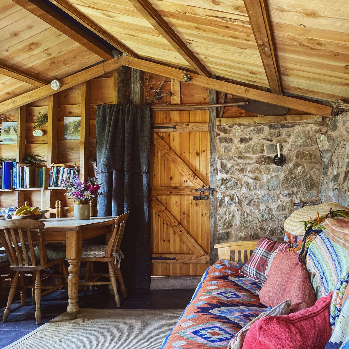 Our handcrafted luxury shepherd’s hut sits in the peaceful grounds of our 17th century farm. Wake to birdsong, sip coffee by the pond, explore the walled garden or ancient woodland and stargaze under some of the darkest skies in North Wales. Wildflowers surround a private outdoor seating area and with charming heritage details throughout, this cosy retreat blends comfort with countryside calm. Meet our friendly farm animals and enjoy a taste of slow living on our sixth-generation hillfarm