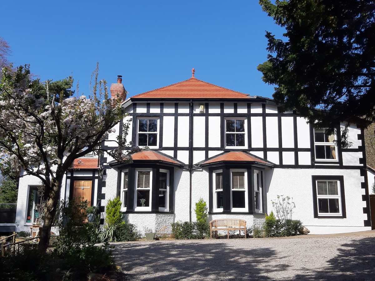 CHECK IN/OUT MON & FRI ONLY Sleeps 8 persons-4 bedrooms/2 bathrooms/shower room/downstairs wc Snowdonia National Pk/Conservation area Traditional large & spacious Victorian Country House (1840), tastefully furnished & decorated. Private landscaped patio-dining & seating FREE USE pool/jacuzzi/sauna/steam/gym (10min walk) 15min walk pubs/restaurants/shops of the bustling Betwsycoed Designated free space 4 cars, off road on private property 40 yards from front door 2 dogs -£10 p/n each