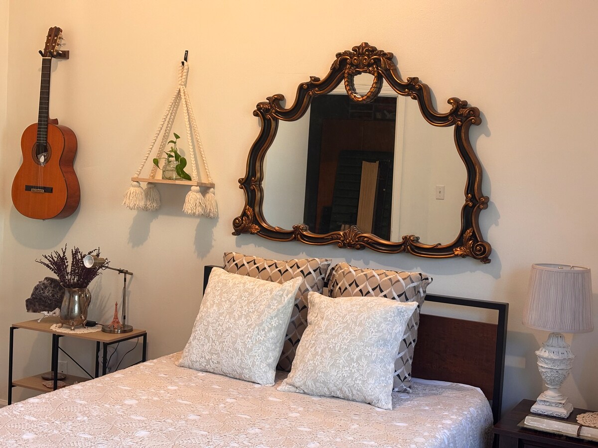 Stay in our Lakeside Bungalow guest house, which has everything you’ll need for a relaxing stay—lake views, king size bed, Smart TV, private patio w/ firepit, & more. Enjoy fishing, paddle boating, & wildlife watching. We often see turtles, deer, great blue herons, geese, frogs, fish, & fireflies⚡️. Guest house shares one wall (kitchen wall) with main house. 2 friendly Pomeranians on site. A secluded nature getaway but still close to all conveniences! 10-15 mins away from Target, Walmart, etc