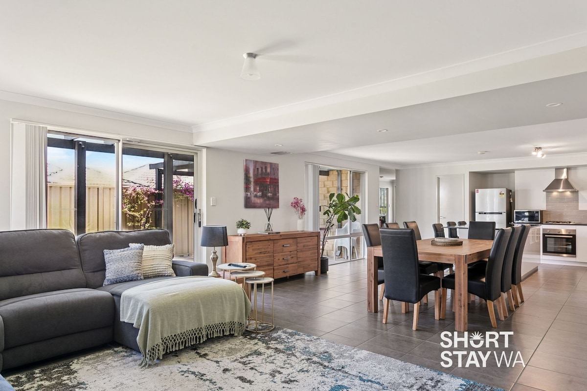 Luxury 4-bedroom villa sleeps 12 with 4 ensuite bathrooms, perfect for families or groups of friends. Enjoy city views, home theatre, trampoline, and modern living spaces. Minutes from the city, airport, beaches, and Swan Valley. Stylish, spacious, and full of fun — ideal for relaxing, entertaining, exploring, or celebrating. Comfort, adventure, and unforgettable memories all in one amazing home!