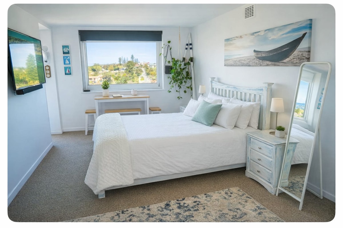 Boulters is a bright, pet-friendly (on request) 3 bedroom, 1.5 bathroom townhouse perfect for families and friends. set in the center of the vibrant city. Downstairs: open kitchen, lounge, dining, laundry, and 2nd toilet. Upstairs: two bedrooms (queen; queen + single) plus main bathroom. The loft with single bed is ideal for older kids. Extra fee if more beds used than booked. Private back yard and secure parking. Prime location — walk to cafés, Fremantle Markets, parks, and the beach.