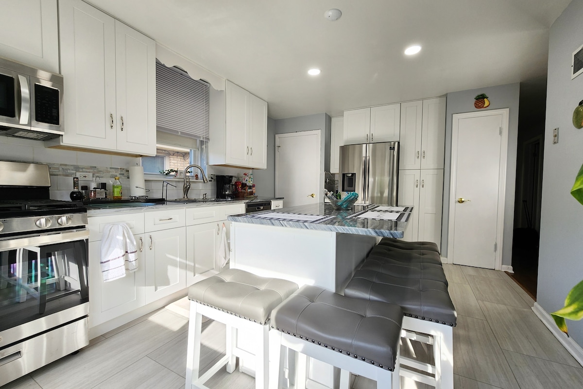 Whether your looking to stay near family or be close to Downtown. This place has it ALL! This coach house is located in Mt greenwood which is one of the safest neighborhoods in the City of Chicago. It is home to many police, firefighters and teachers. Downtown is a quick 30 minute drive and there are also many bars and restaurants in walking distance. The home has been totally renovated and stocked with all the essentials. All you need to do now is pack your bags and enjoy your vacation.