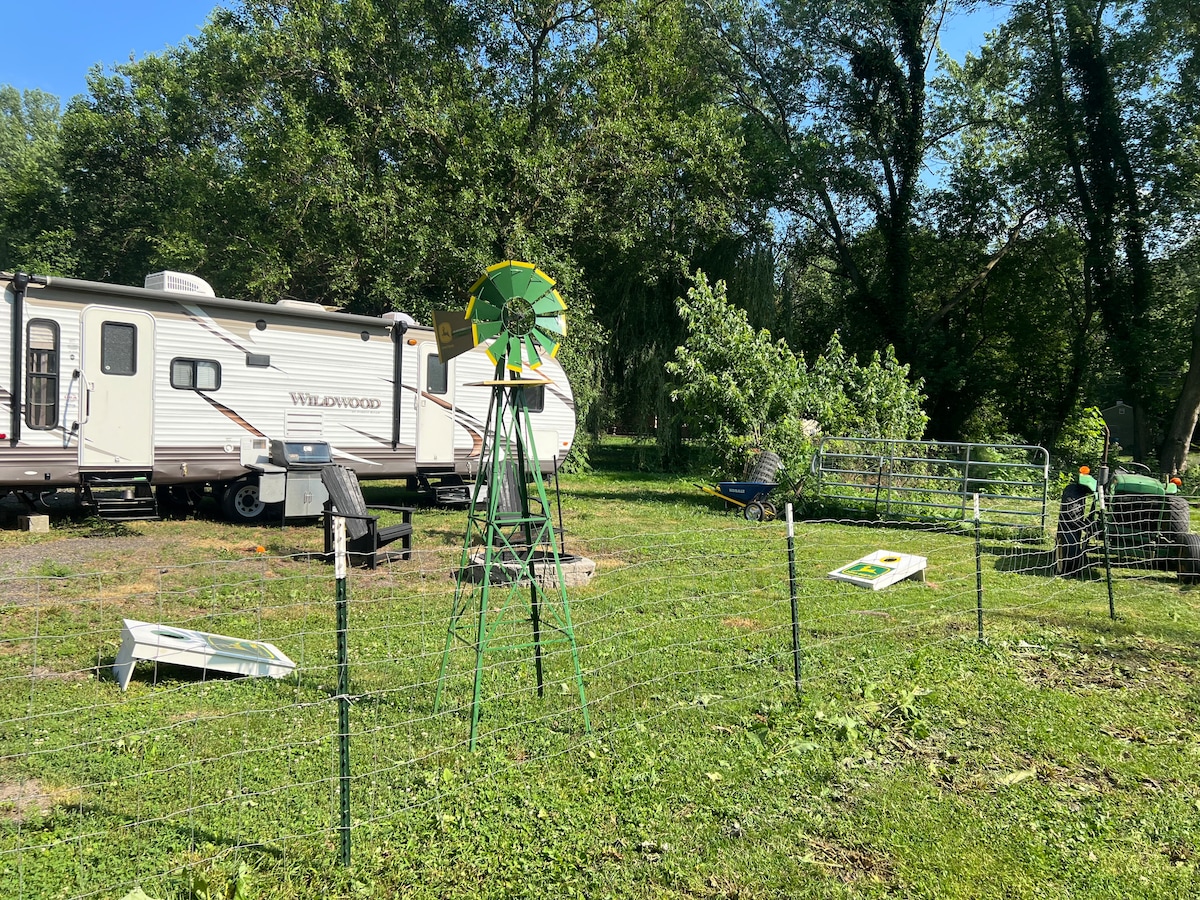 Enjoy the lovely setting of this romantic spot in nature. A hidden treasure in the “middle of America” less then a mile off the highway. A short 10 min drive to Indiana dunes and Miller beach. A 45 min drive or train ride from Chicago. You’ll have your own private camper at our John Deere station. You’ll be able to get up and personal with our horses, ponies and goats. The closest farm friendly experience you can get too Chicago. From a first time camper to an experienced camper, all is welcomed