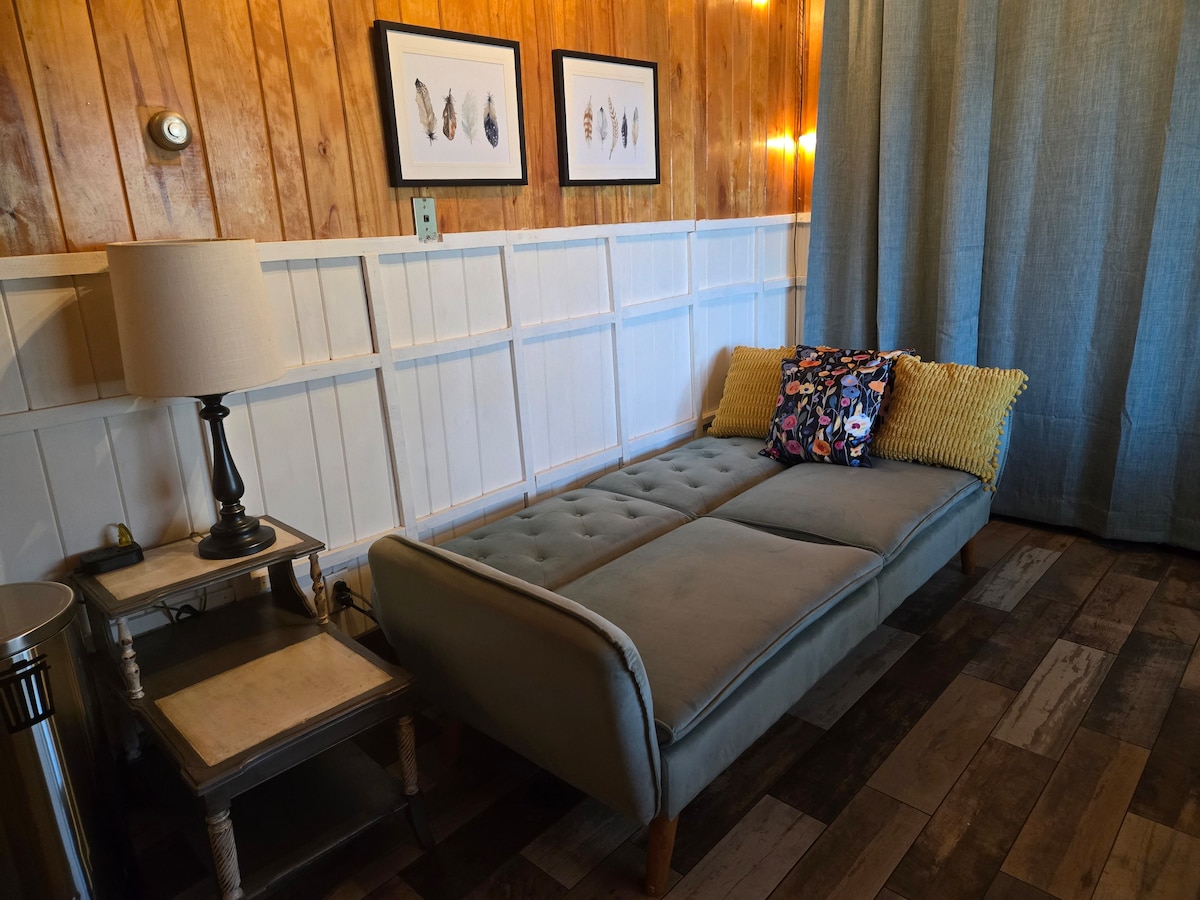 Room #1 in The Feather Nest Inn! The motel is sustainably minded including eco friendly linens & toiletries! This space includes a bedroom with a queen bed, a one-person futon, lofted twin and another queen bed in the living space. Fully equipped kitchen-from utensils to pots and pans. Cozy and comfortable. Well behaved pets allowed (with $35/ pet fee & signed agreement which will be in the room) Please be aware these are shared-wall units and noise does travel between spaces