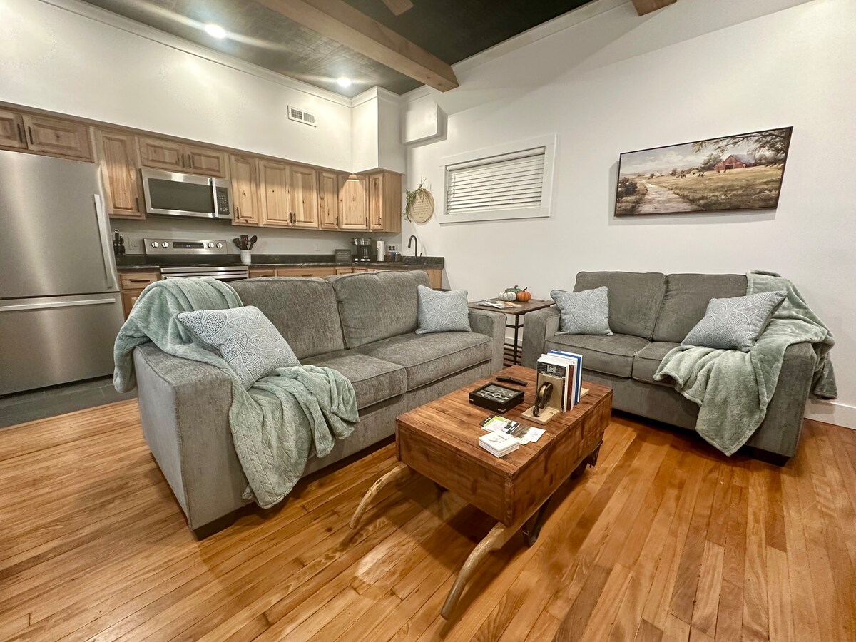 Brand new 1000 sq. ft apt across from the historic train depot. This 3rd floor unit is perfect for a Cookeville getaway. It's a 1 bedroom with queen size bed, 1 bathroom unit with a queen sleeper sofa. It features all new furnishings and offers free downtown parking close to many restaurants, coffee shops & boutiques. TN Tech and Cookeville Regional are less than a mile away! Whatever your reason for visiting, Cedar Station is the perfect place to stay!