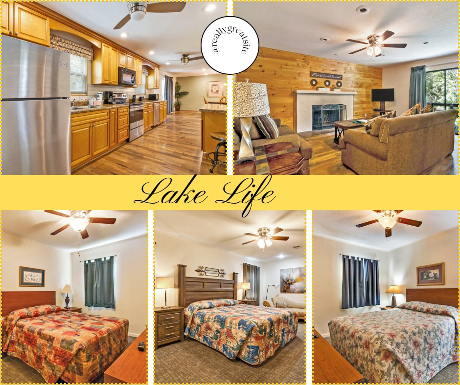 The Family Suite offers plenty of space with 3 bedrooms, a loft, and 2.5 bathrooms—perfect for families or groups. Enjoy time together on the large second-floor balcony with a fire pit (wood provided) and grill, or relax on the first-floor patio. Take the golf cart down to the marina, explore nearby trails, or unwind with peaceful lake views. The home is fully furnished and thoughtfully designed for a comfortable and relaxing stay. Pontoon boat rentals $250 for 8 hours, first come first serve.