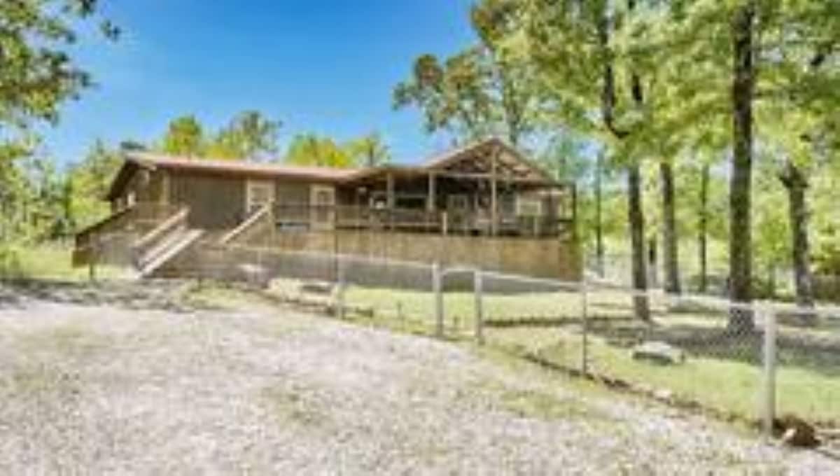 Forget your worries in this spacious and serene space. Sitting on over an acre by the woods, this beautiful Tenkille Lake cabin located near Vian has everything you could want in a lake getaway. Enjoy the great location, must have amenities, and space to gather with friends and family. Boasting over 4,000 sq ft of living space, this 3 bedroom, 3 bathroom vacation home is complete with a large gameroom, hot tub, firepit, a double sided fireplace in the heart of the home, and fiber optic WiFi.