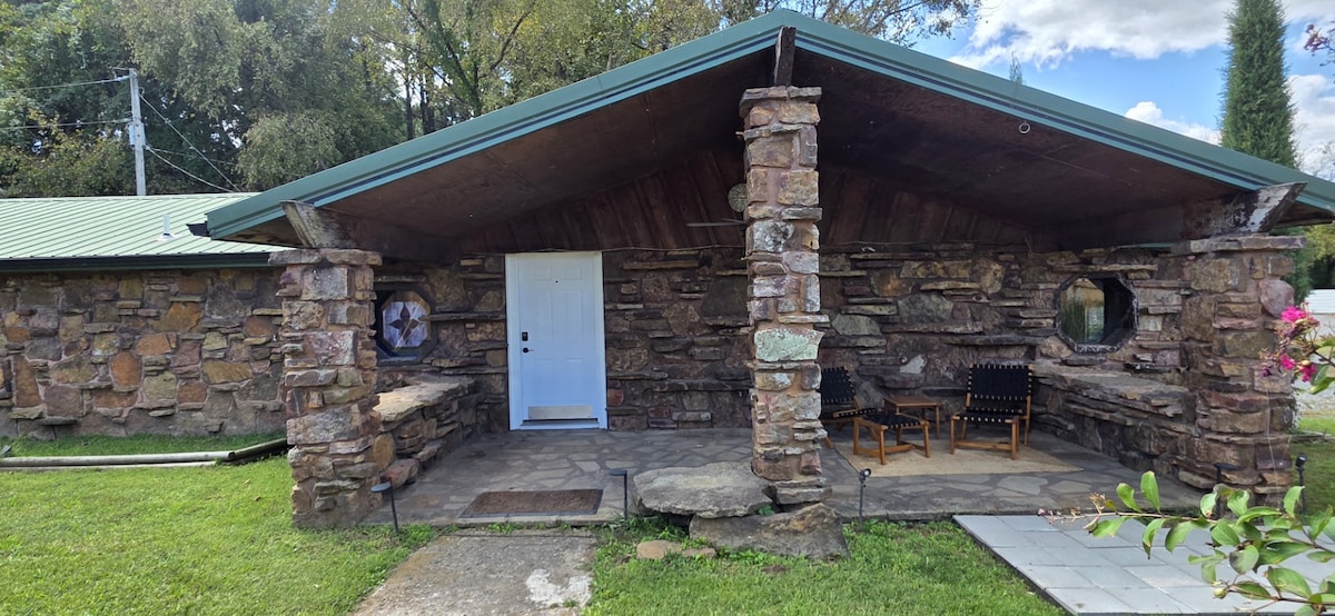Escape to a river landscape with private access to the Illinois River below Lake Tenkiller, renowned for rainbow trout. Fishing is available all seasons on a stocked river. Private access with a beautiful walk to a private water access for the family. Cabin offers traditional cabin esthetics with amenities, wild game mounts, antique lighting, and premium furniture. Trout River Lodge offers family-friendly retreat for 6-12 people or nice couples getway. Building 4 additional cabins on property.