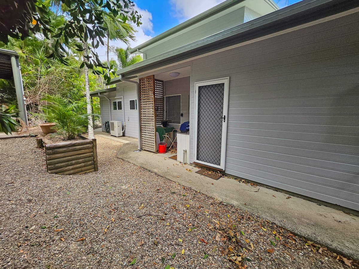 Garden Cottage is 1km to town and 1.2 to the waterfront .It is surrounded by beautiful gardens. The big trees keep the area cool during the heat of the day. We are in town but you will feel like you are in a rainforest . Driveway leads up to the door. Outdoor Gazebo for drinks by the fireplace . Large trampoline , cubby house and tree swing for kids. Garden Cottage. Relax and Enjoy Beautiful Cooktown.