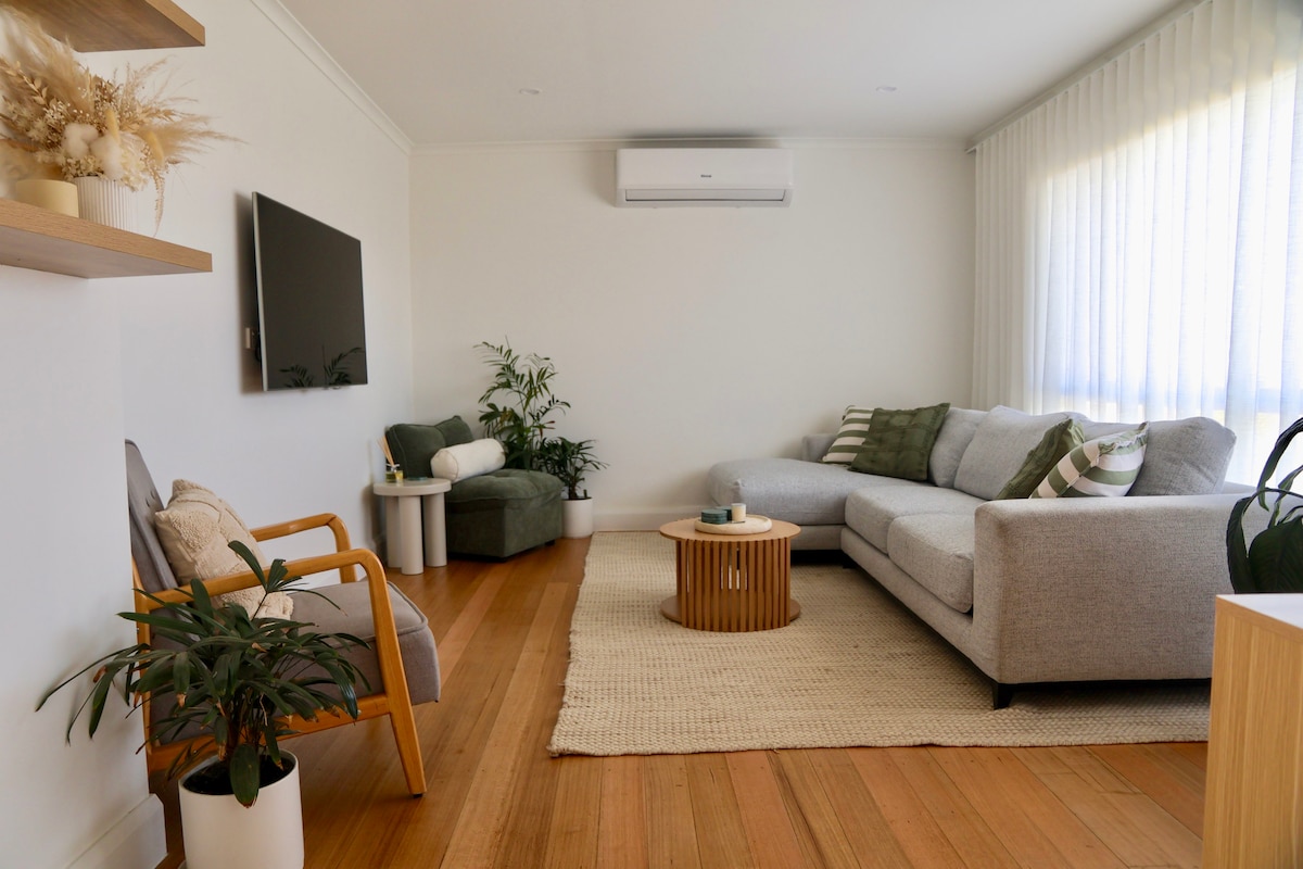 Discover the charm of suburban living in our delightful Westmeadows home, perfectly positioned just minutes from Melbourne Airport. This serene sanctuary offers cozy queen beds, a modern kitchen fully equipped for your culinary adventures, and a picturesque garden with outdoor dining for six. Begin your day with a gourmet brew from our coffee maker and conclude it with a relaxing evening under enchanting lights. Ideal for families or travellers seeking a peaceful retreat with city access.