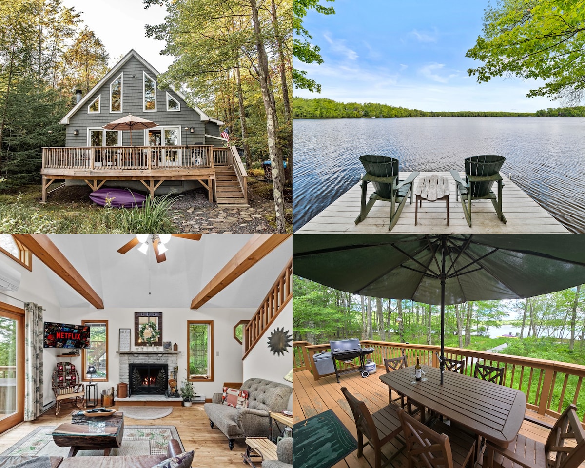 Unwind in our secluded lakefront cabin featuring a hot tub, crackling fireplace and sweeping lake views. What you’ll love: * Steps to the lake—grab the kayaks, SUP or canoe and explore, BYO boat available * 6-person hot tub under the stars * Cozy wood-burning fireplace & fast Wi-Fi * Superhost service: 1-hour average response * All season: Minutes from ski slopes, golf, hiking trails and quaint mountain towns—perfect for couples’ retreats or small families Book now —peak weekends fill fast!