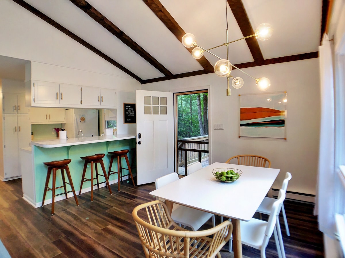 Welcome to @cinderlochchalet ! Stay with us at our fully renovated modern Chalet in a private amenity filled community. The 3br,2 bath home is located within the gates of the Arrowhead Lake Community in the Pocono Mtns. Within minutes of the cabin you will find 2 lakes with 4 beaches, 3 pools (as available), 8 playgrounds,and a community lodge.We are also within 10-30 minutes of Jack Frost/Big Boulder, Kalahari, Camelback, Pocono Raceway and Mt Airy Casino. We look forward to hosting you!