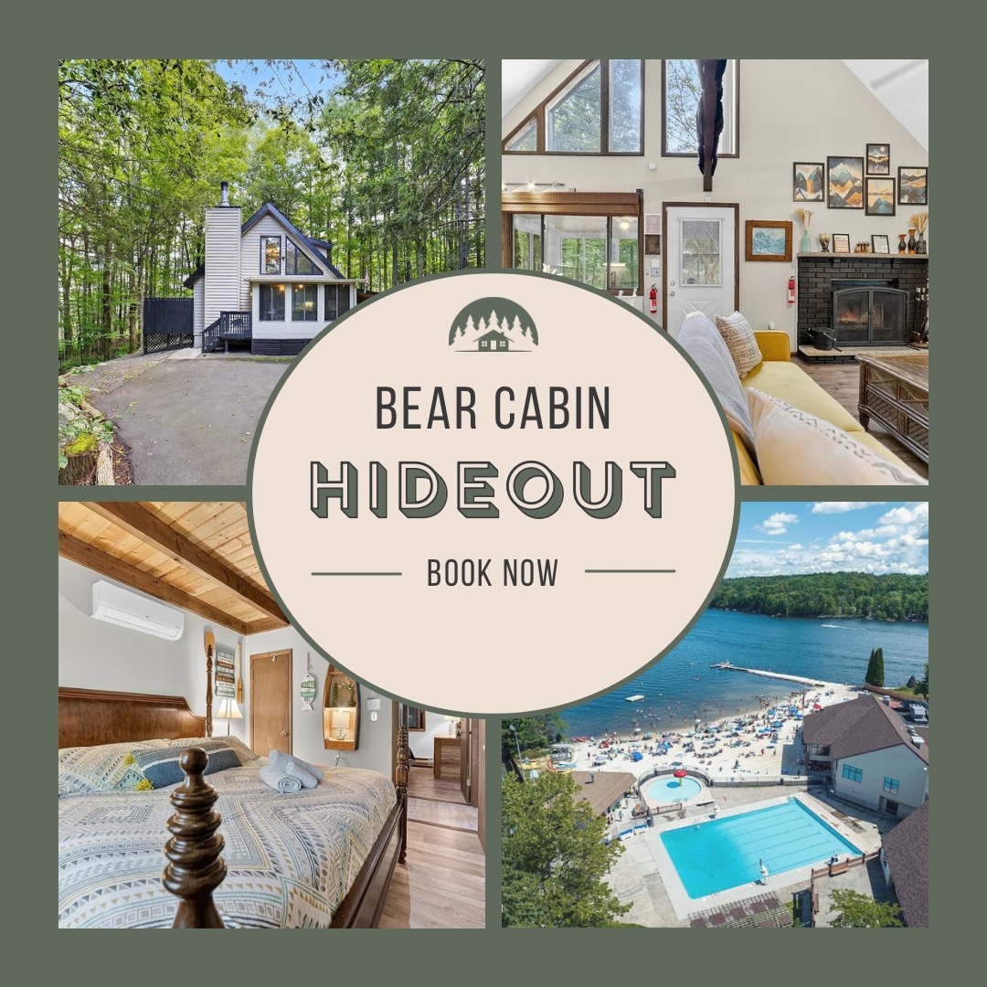 Enjoy summer at this cute and cozy A-frame cottage, located in the gated Gold Star community of Arrowhead Lake! ✔ Short walking distance (2 mins) to a private lake (within gated community) ✔ 4 beach areas, heated pools, boat/kayak rentals (seasonal) ✔ Game room, gym, library, billiards and so much more! (Common games room) ✔ Community lodge with a lot of events (bonfire, live music, etc) ✔ Private and secluded with a huge yard ✔ Relax on our back deck and enjoy the grill and the fire pit area