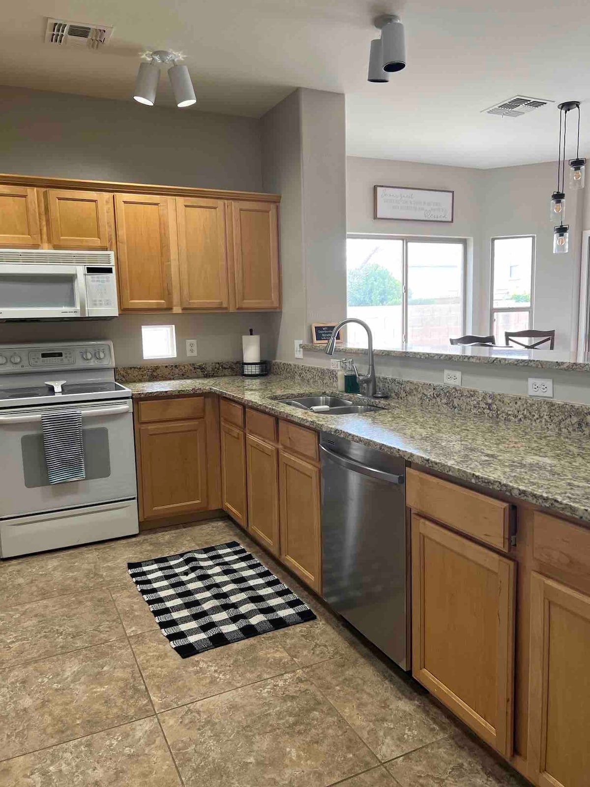 Make yourself at home in this spacious 3-bedroom, 2-bath home in the San Tan Valley. The open concept space is full of light with a large kitchen and living room, perfect for groups of up to 6. Keypad entry provides easy check-in. Southeast of the greater Phoenix/Mesa metropolitan area, there is quick access to hiking, golf, biking... but still close enough for your dining and shopping pleasure. Take in the open spaces of the Arizona landscape while still being close to urban attractions