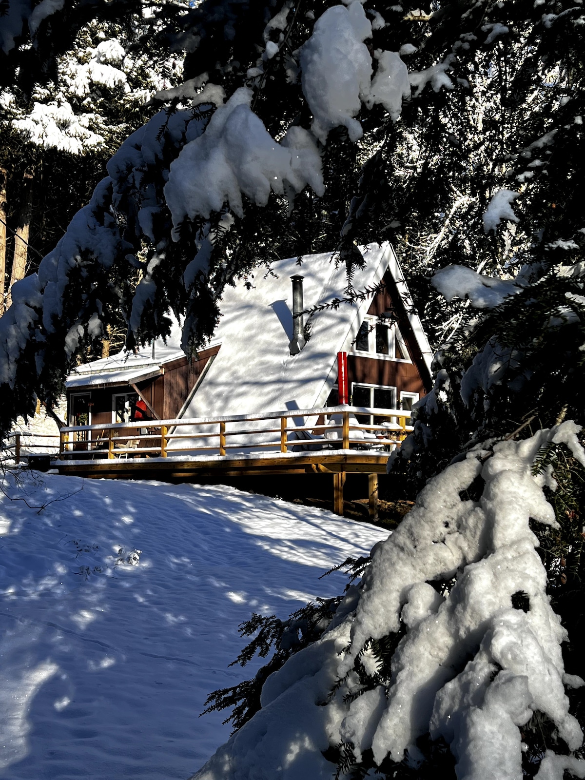 Welcome to the beautiful Catskills! Our beautiful A-Frame Chalet is situated on 6 acres of private forested land with lovely views of nature. Come stay in the fresh air! The chalet is fully stocked to be enjoyed for all seasons! Relax under the covered patio in the HOT TUB or lounging on outdoor sectional while watching some NETFLIX/YOUTUBE TV all year round on our OUTDOOR TV, enjoy the brand new SAUNA (March 2026) shoot a game of POOL in our Loft, or take a hike through our private TRAIL!!