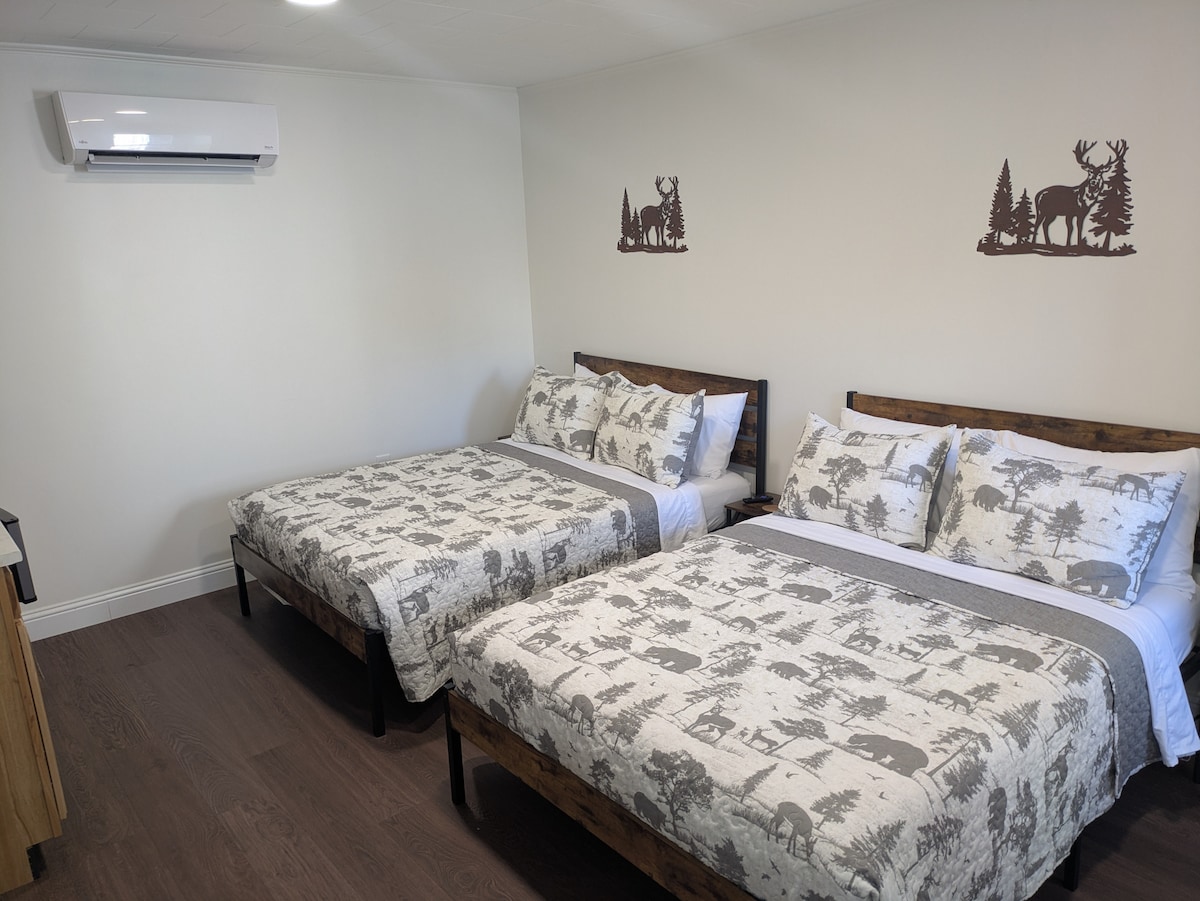 Our Deluxe Two Double Bed room offers ground floor access with no one above you, and sleeps up to 4 people. Each room has oversized windows to let the natural light in and are equipped with modern dual shades that offer a 5% see through shade as well as a private 100% black out shade. You'll love the feel and comfort of our Triple Dream Sheets and pillows that offer a luxurious nights sleep!
