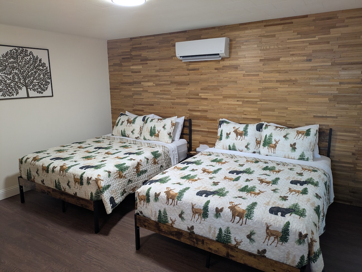 Forest Floor Hideaway: A stylish, renovated Queen bed retreat in the White Mountains. Perfect for couples or solo travelers, this room features a private entrance for a seamless, stair-free stay. Work or stream with high-speed fiber internet and a Smart TV. Includes a mini-fridge, microwave, coffee. Enjoy The Inn & More’s pool, fire pits, and private trail to the Saco River. Located near North Conway. Clean, quiet, and modern—your ultimate mountain basecamp!