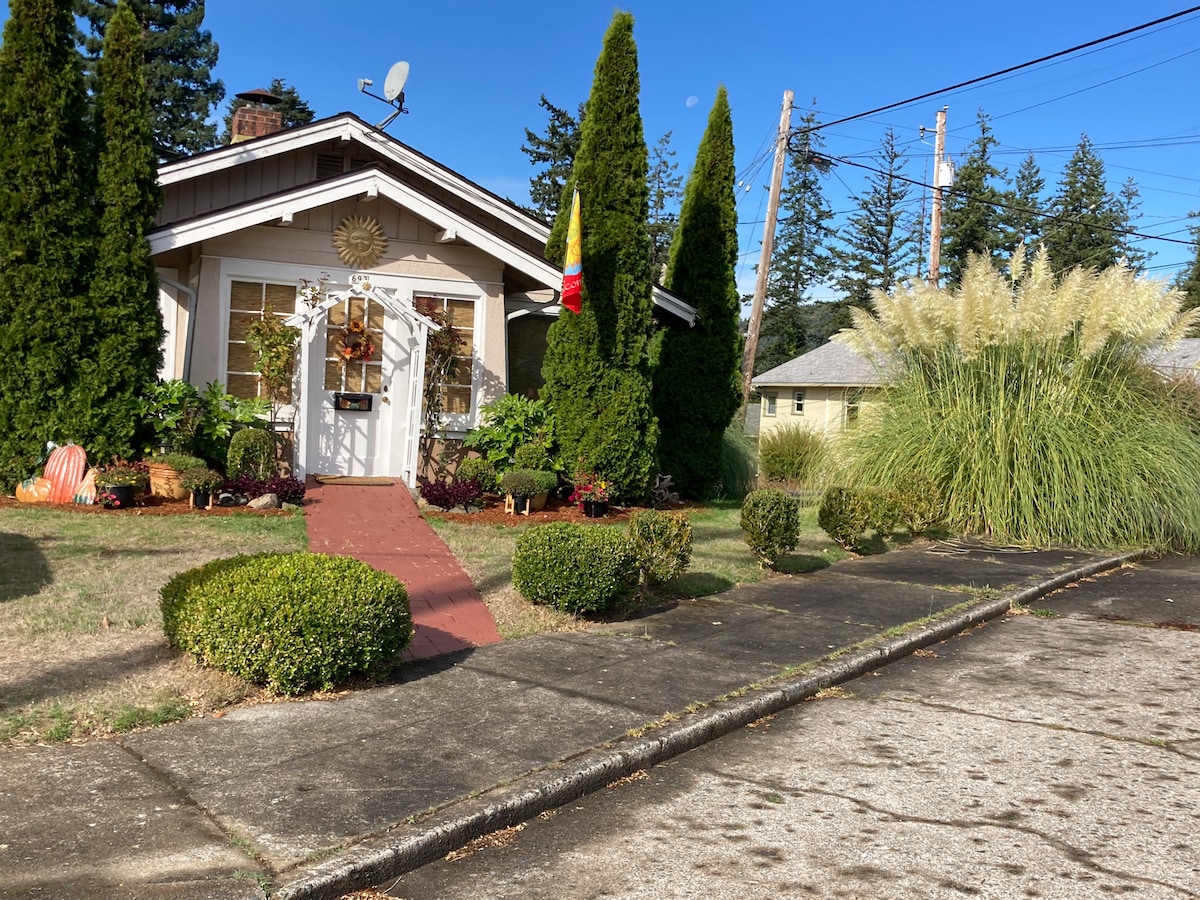 Very private, Charming 1905 1 Bedroom apartment in Mingus park neighborhood. Within walking distance of restaurants, coffee shops in downtown Coos Bay. Full Kitchen & Laundry. Wifi, TV with Netflix. Queen sized bed in private bedroom. Awesome 2 person comfy sofa in family room. Pack n’ play available for babies or cot available for older children or for extra guests. Pets allowed with previous discussion and small cleaning fee.