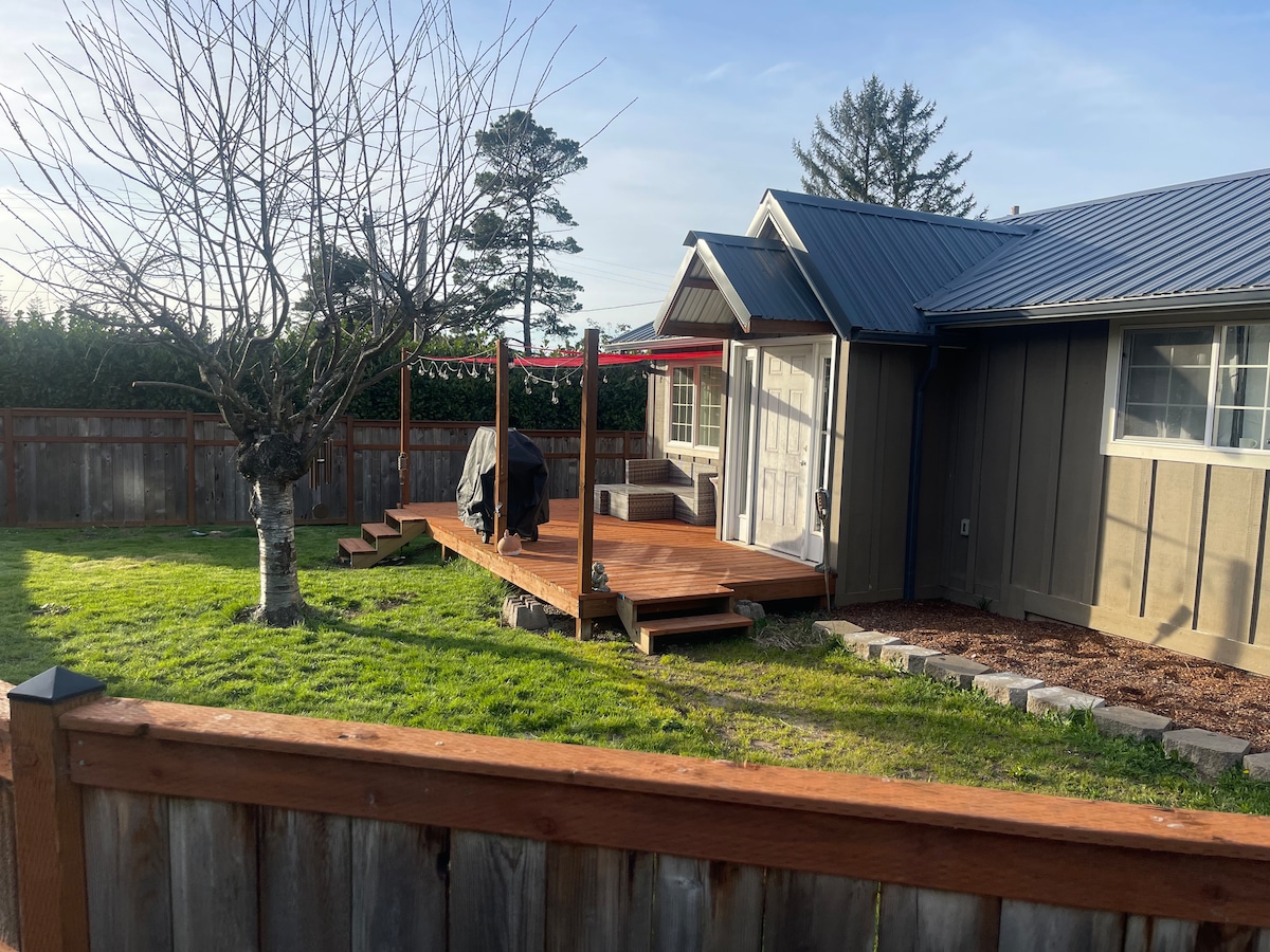 NO VISITORS NO PETS NO SMOKING Quiet and secluded, this one bedroom apartment(810 sq. ft.) is the perfect hideaway for those who want a peaceful place to relax. Spacious and comfortable, it comes complete with a kitchen, essential amenities, Ziply fiber optic WiFi, 55” Roku TV, backyard fire pit, and hot tub. You’re only a mile or two away from Mingus Park, Coos Bay Waterfront, and the Mill Casino. And only 8-12 miles from the ocean beaches!