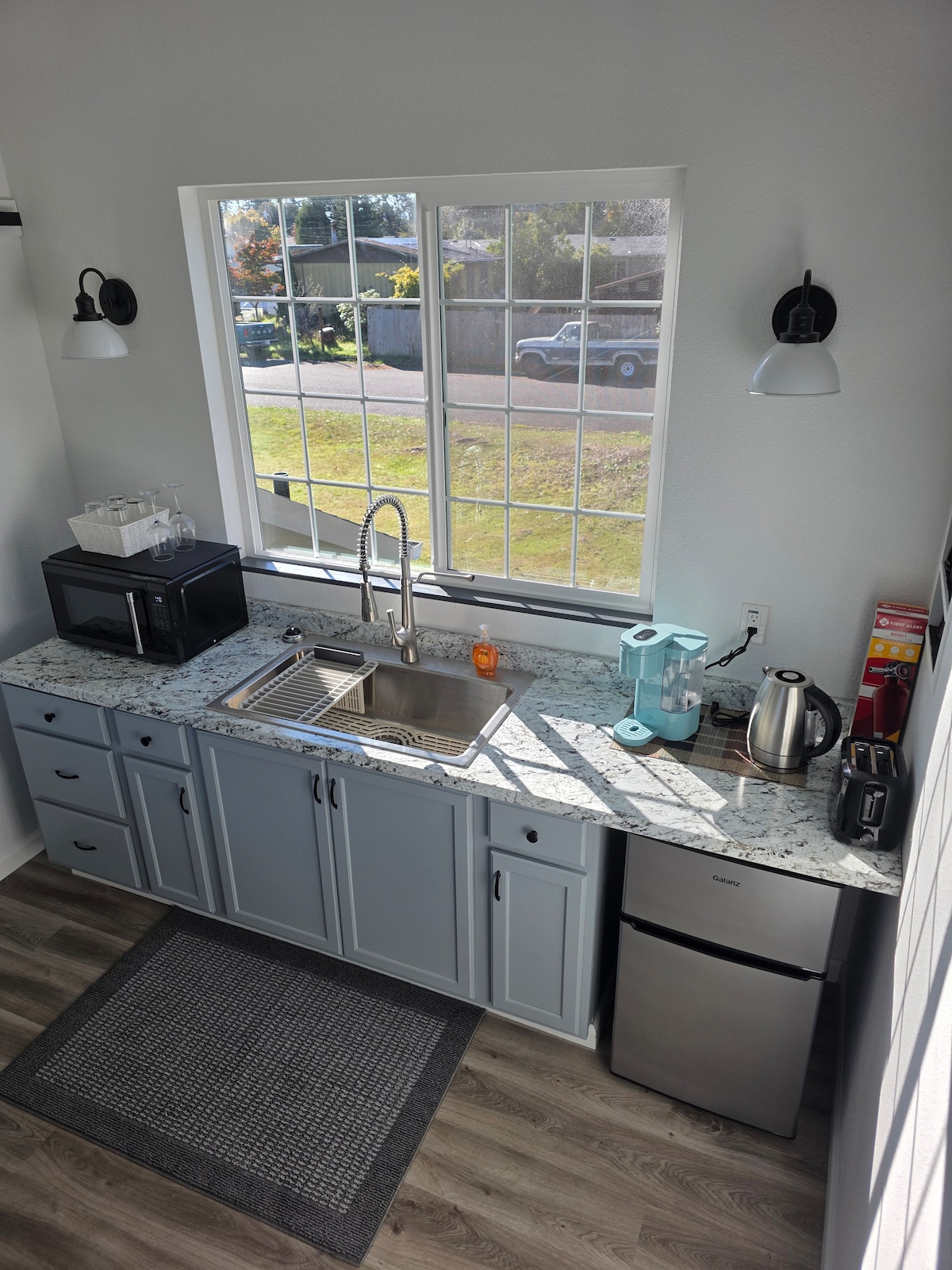 This is a lovely little studio apartment located on pristine property, overlooking the National Dunes Recreational Area and the waters of the Coos Estuary; Oregon’s largest estuary. A short walk also takes you to the Bay Area’s top restaurant/lounge The Hilltop House. The studio is all inclusive; providing linens, towels, fully equipped kitchen, high-speed internet, TV with Amazon Firestick, and on-site free laundry. - everything you need to have a relaxing and comfortable stay.