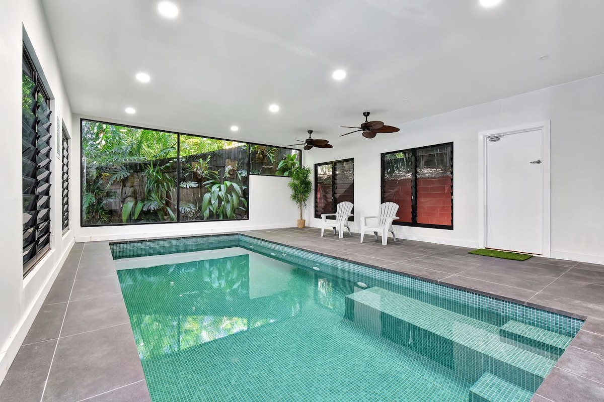 Picture waking up the chortle of the kookaburras, warm glow of the sun peeking at the door. Step outside onto your private deck, taking in the views of the Pacific Ocean. The Wabi-Sabi techniques used to build this home encompass the serenity of nature. This home is built for the quiet luxury, by this we mean the luxury of Time, Health, A quiet mind, Slow mornings. Soak in the hot spa, exercise in the 12.5m mineral pool, have an Infrared sauna, take in a hiking trail. Surf right at your door.