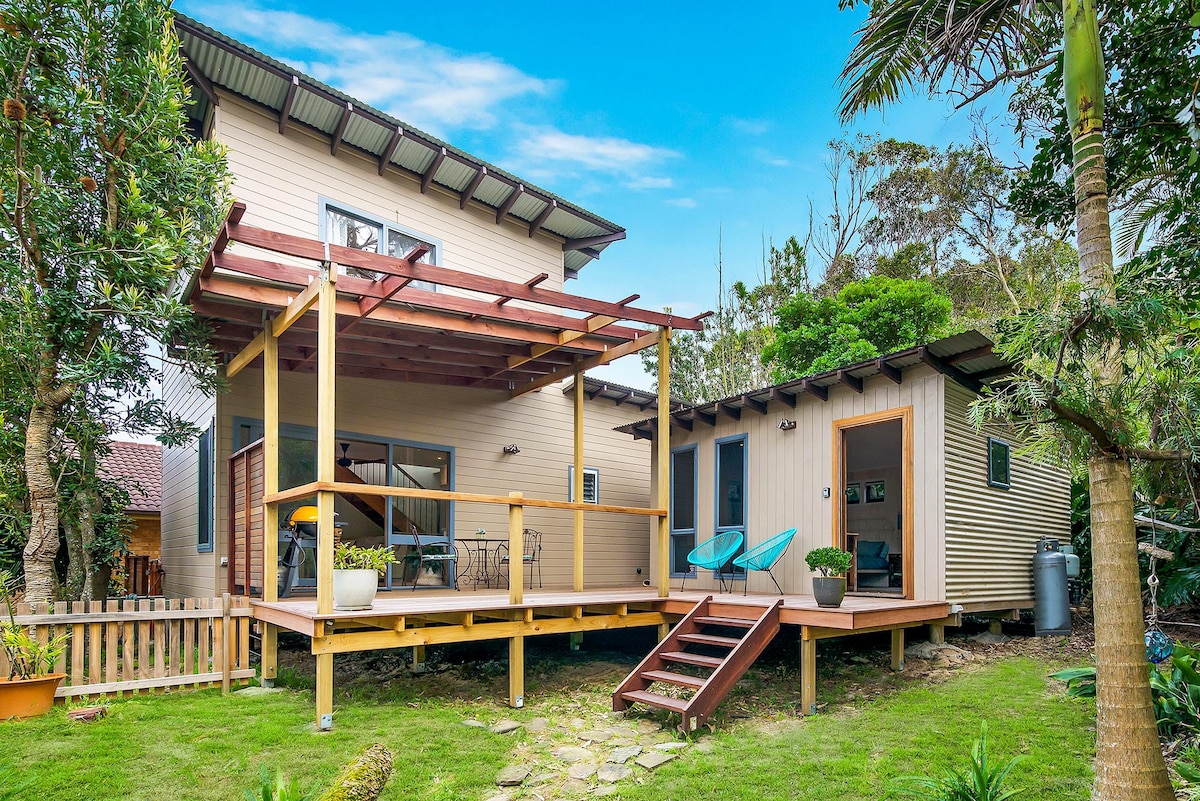 NEST AT BLUE BAY is a luxury couples accommodation situated in the middle of the two spectacular bays, Blue Bay and Toowoon Bay. Both beaches are just a 5 minute stroll away with the trendy local cafes and boutique restaurants in the village less than 200m away. Sunsets by the lake a must, 20 minute walk. Nest is suitable for 2 guests (1 king BEDROOM + luxurious BATH tub, SHOWER and small KITCHENETTE, living room and private deck. Laundry and carport) We have a hooded bbq on the deck.