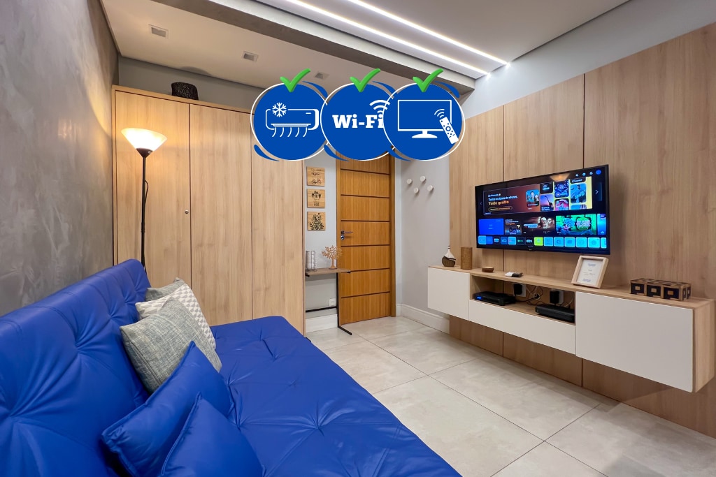 Charming and silent 25m2 studio, fully equipped, with high standard kitchen, bathroom and bedroom, and acoustic window with a 95% reduction of external noise. The studio is fully intelligent and responsive to voice commands (TV, sound, temperature and lighting). Located in the heart of Copacabana beach, our space is also just a few minutes walk from Ipanema beach, supermarkets, subway and a multitude of bars and restaurants, in the best of Rio style!