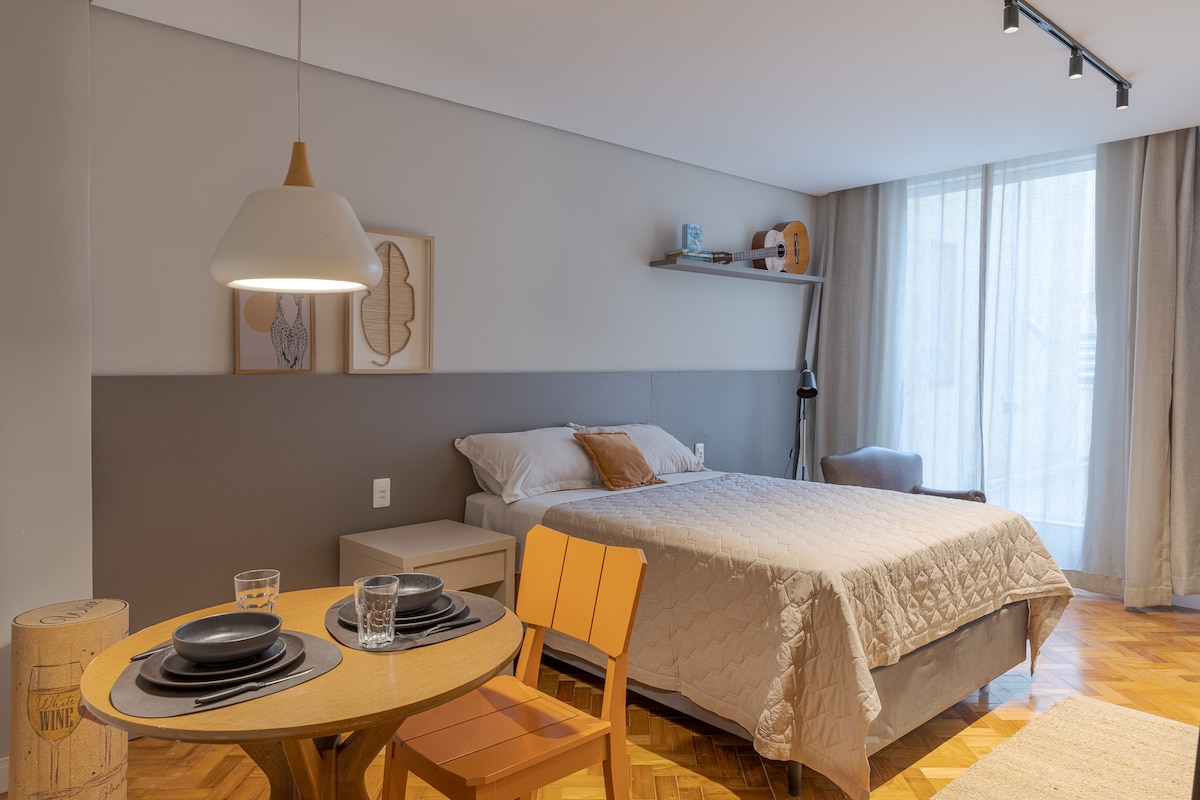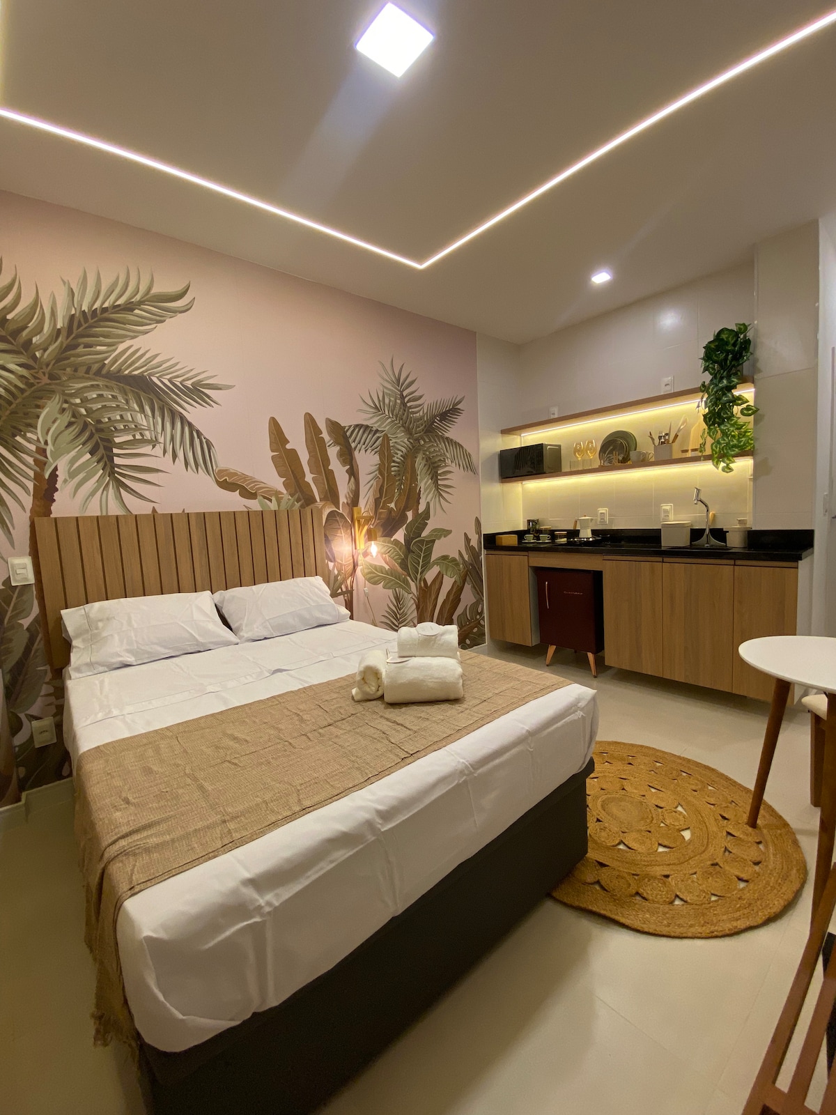 🌿 The Space 23 m² studio with tropical décor, modern and functional design. Every detail created for comfort and style. ✨ 🛋️ Amenities Wi-Fi 600 Mbps ⚡ | Split A/C ❄️ | 46’’ Smart TV 📺 | Fully equipped kitchen with microwave, coffee maker & utensils 🍳☕ 📍 Location 5 min walk to Copacabana Beach 🏖️ and subway 🚇. Surrounded by bars, restaurants & markets 🍷🛍️ 💦 Comfort & Extras High-pressure shower 🚿 | Buddemeyer towels 🧺 | Flexible check-in ⏰ | 24 h concierge 🏢.