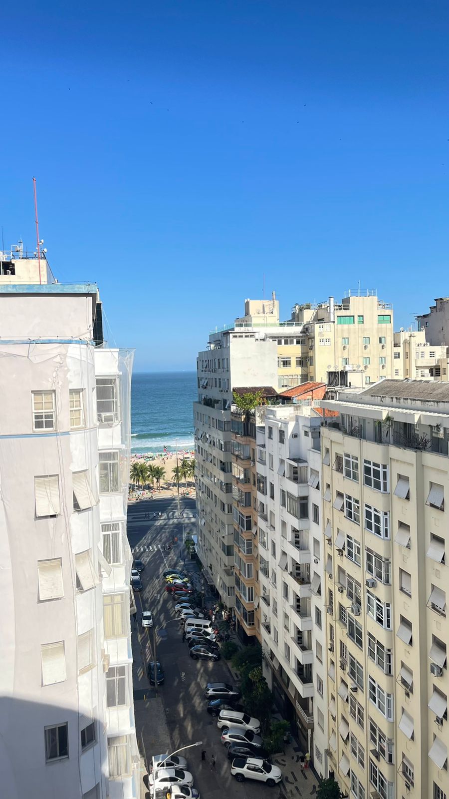 Apartamento inteiro, a 3 minutos à pé da praia de Copacabana e com vista mar. Ao lado do hotel Copacabana Palace, a 5 minutos do metrô, 15 minutos de carro do Aeroporto Santos Dumont e 20 minutos da Rodoviária Novo Rio. Perfeito para 2 ou 3 pessoas. De fácil acesso aos principais pontos turísticos da Cidade. Ótima localização, muito próximo ao comércio, ao lado de diversos bares, restaurantes e cafés, farmácias, mercados e lojas. Totalmente equipado. O prédio possui elevador e porteiro 24 horas.