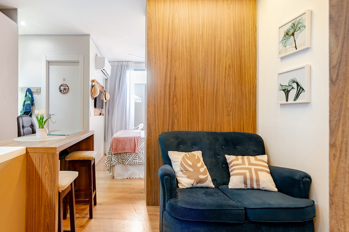 -FLAT top reformado Possb.Garagem -DESCONTO especial reservas c antecip+60 dias Pmin.10 dias PRAIA/METRÔ+-180m Checkin/checkout flexível p1/2 diária-cada sob consulta -Guarda Bagagem grátis p/peq volume -Wi-Fi Potente/Area Trabalho -Varanda -Banheiro grande chuveiro bom -Cama Madeira maciça -2 Sofás CamaCasal bons - TV Smart Samsung -Ar Cond -2 Vent. deTeto -Máq.Lavar -CozinhaGrande -PISCINA -SAUNA -ACADEMIA -Mercadinho24h -LavanderiaSelf-service24h -CarregVeicular -Serviço básico arrumação