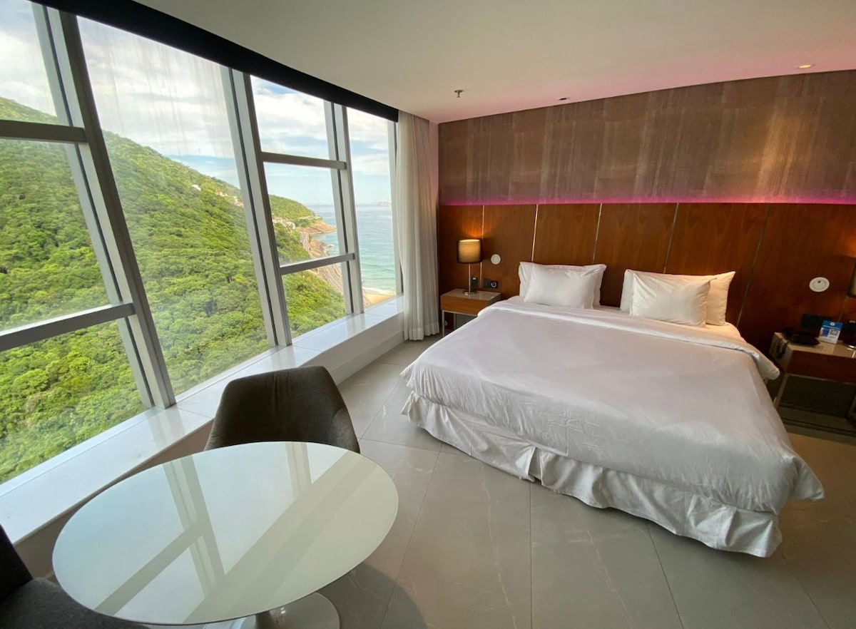 Hospede-se no Hotel Nacional, em uma suíte luxuosa com cama king size e espaço para até 4 pessoas. Desfrute de uma vista incrível para o mar de São Conrado e relaxe com toda a comodidade e estilo que você merece. Perfeito para férias em família ou momentos especiais. Reserve agora!