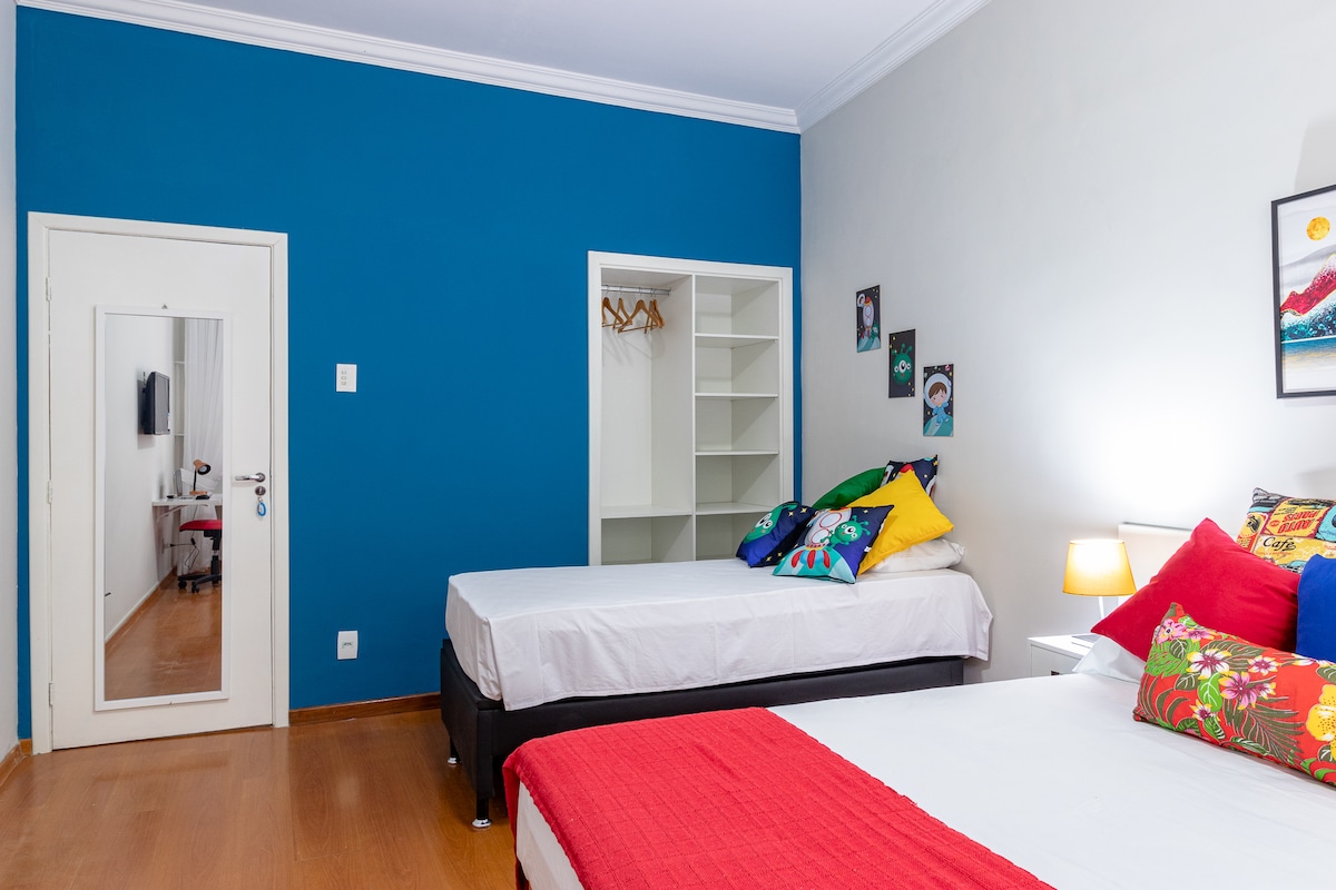 Freshness, movement and beach. Live a Rio experience in this comfortable and complete loft for up to 3 people. The space is in a traditional neighborhood property, and offers complete tranquility for a safe experience in the city. Located next to post 2, it is surrounded by restaurants, bars, drug stores and a 24-hour padaria. Incredible mobility to the main tourist points of the Rio, through the subway or through app services. Walk 5 minutes to Copacabana beach.