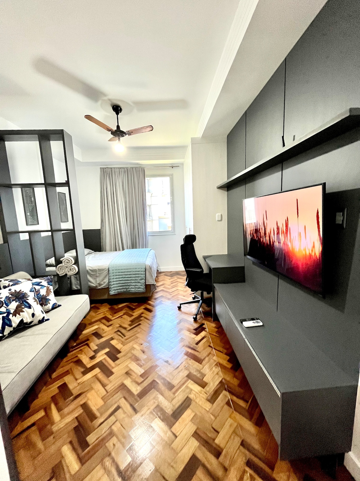Well-maintained studio in a modern building with pool, BBQ area and gym. Features a queen-size bed, Wi-Fi and a balcony with evening sun and a beautiful view of the Arcos da Lapa. Walking distance to: – 5 min: Cinelândia Metro, Catedral Metropolitana, Selarón Steps, Santa Teresa Tram & Municipal Theater – 15 min: Confeitaria Colombo, Praia do Flamengo & Aterro do Flamengo In the evening, enjoy the vibrant nightlife of Lapa with samba bars and clubs just around the corner.