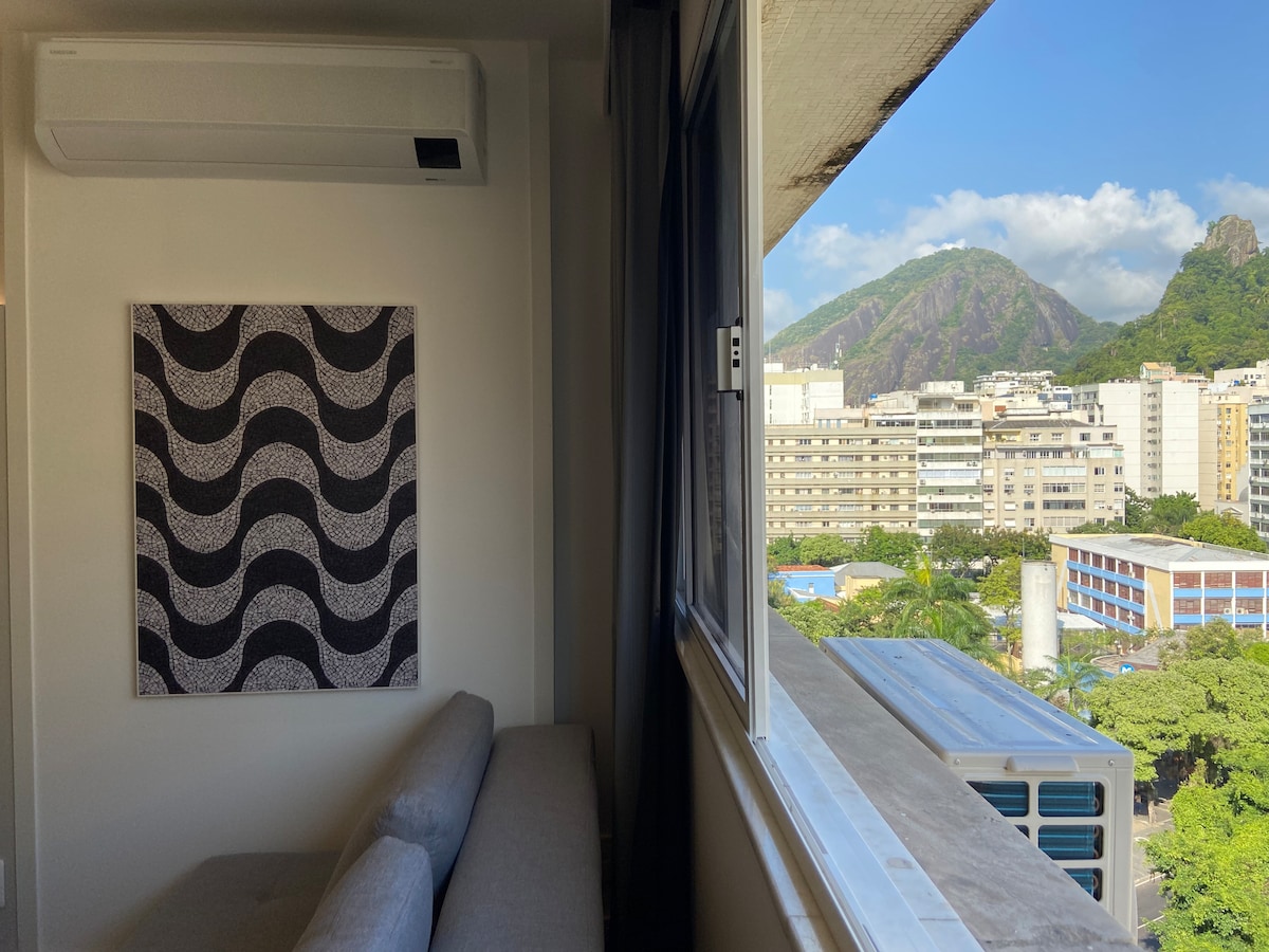 Enjoy a stunning and unique view of both the ocean and the mountain in a centrally located 2 bedroom renovated apartment in Leme, Copacabana ideal for families and couples. The apartment is cozy and has everything you need to make you feel at home. A very spacious and stylishly decorated living room, and a fully equipped apartment. One bedroom has a queen bed, the second bedroom has 2 single beds, and there are 2 more mattress/futons that can be placed in the living room if needed.