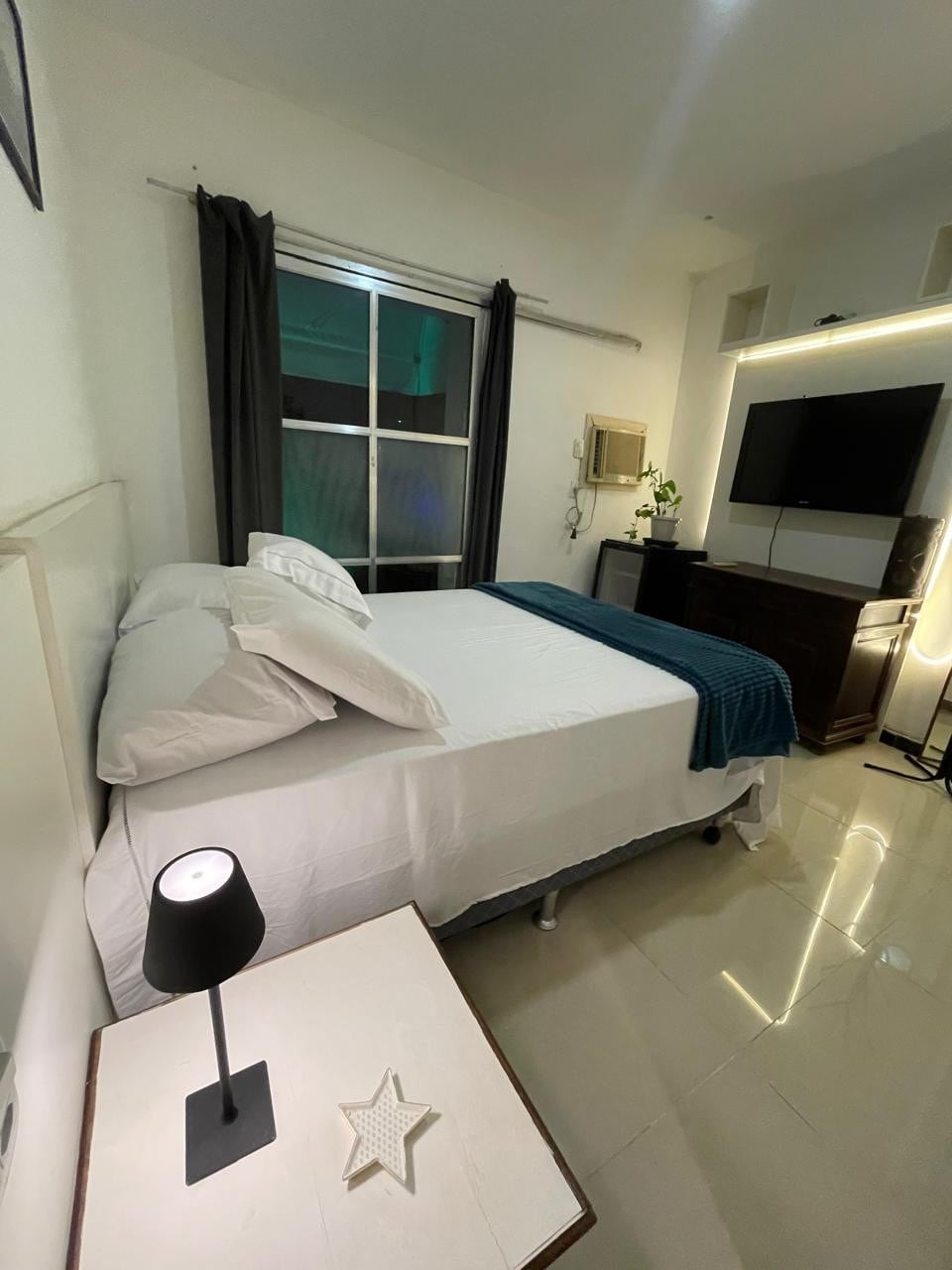 Independent access small space (11 m ²) with air conditioning, sink with 2 burners cooker, fridge and microwave. Private bathroom. Cable tv and wi-fi, 500 m from the Siqueira Campos Metro and 2 blocks from the beach. New space all retired. Accommodates up to 2 people.