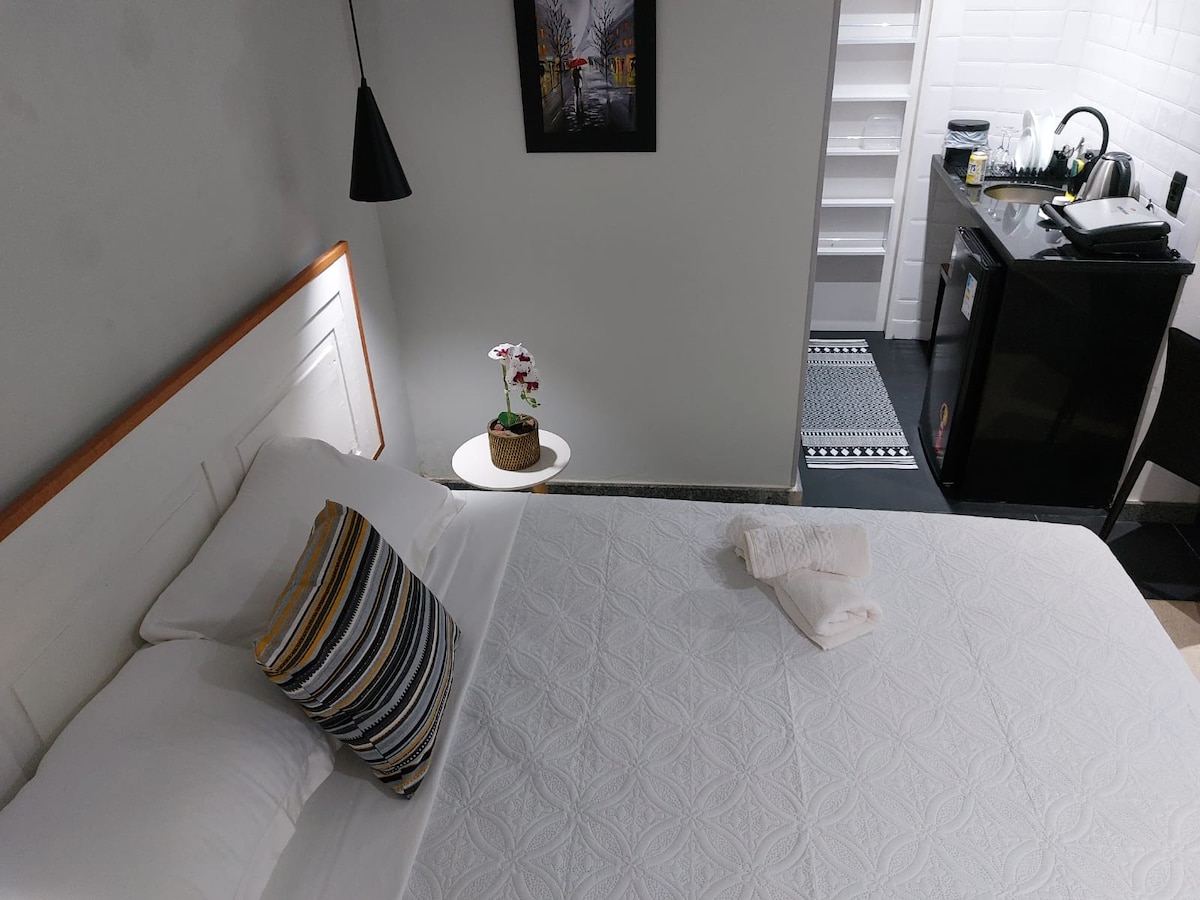 Welcome to your private suite in Botafogo. - Modern, comfortable interior - Excellent location in a calm street with nearby amenities - Air-conditioned room with double bed, minibar, and coffee maker - Enjoy amenities like gym, swimming pool, hot tub, and sauna - Cozy and well-maintained apartment - Supermarket conveniently located below the apartment - Quick and responsive communication with the host - Take advantage of your stay to enjoy several amenities: gym, pool, privacy