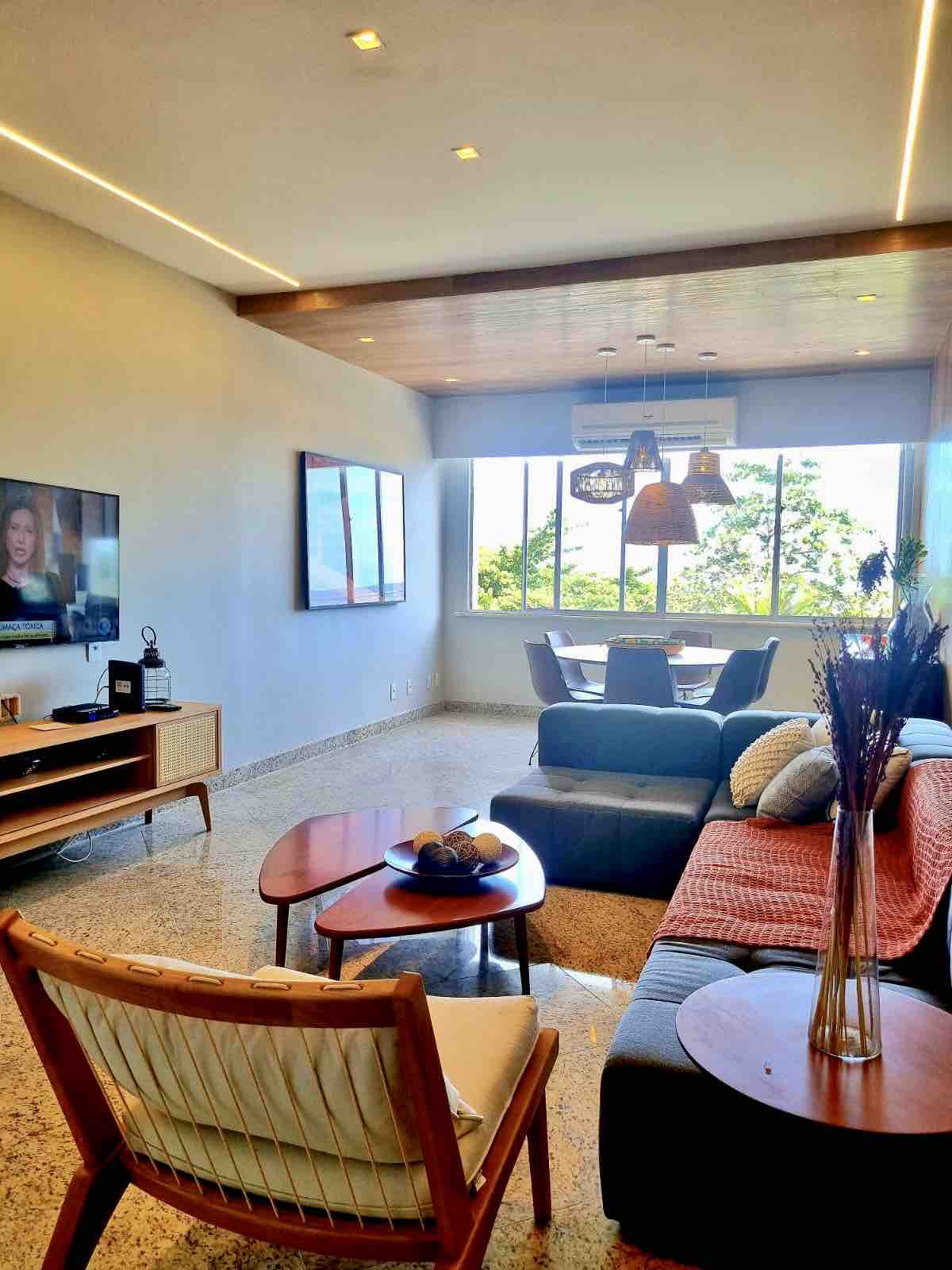 Apartment for 6 people maximum to building regulation, at 3 minutes from Copacabana beach, post 6, with 3 bedrooms, 2 bathrooms, kitchen, air conditioning and central hot water. Partial view of the sea. 4 TV with cable + WIFI and Netflix Apartamento para um máximo de 6 pessoas, de acordo com os regulamentos de construção, a 3 minutos da praia de Copacabana, posto 6, com 3 quartos, 2 banheiros, cozinha, ar condicionado e central de água quente. Sala de estar, sala de jantar e varanda. 4 TV + WIFI