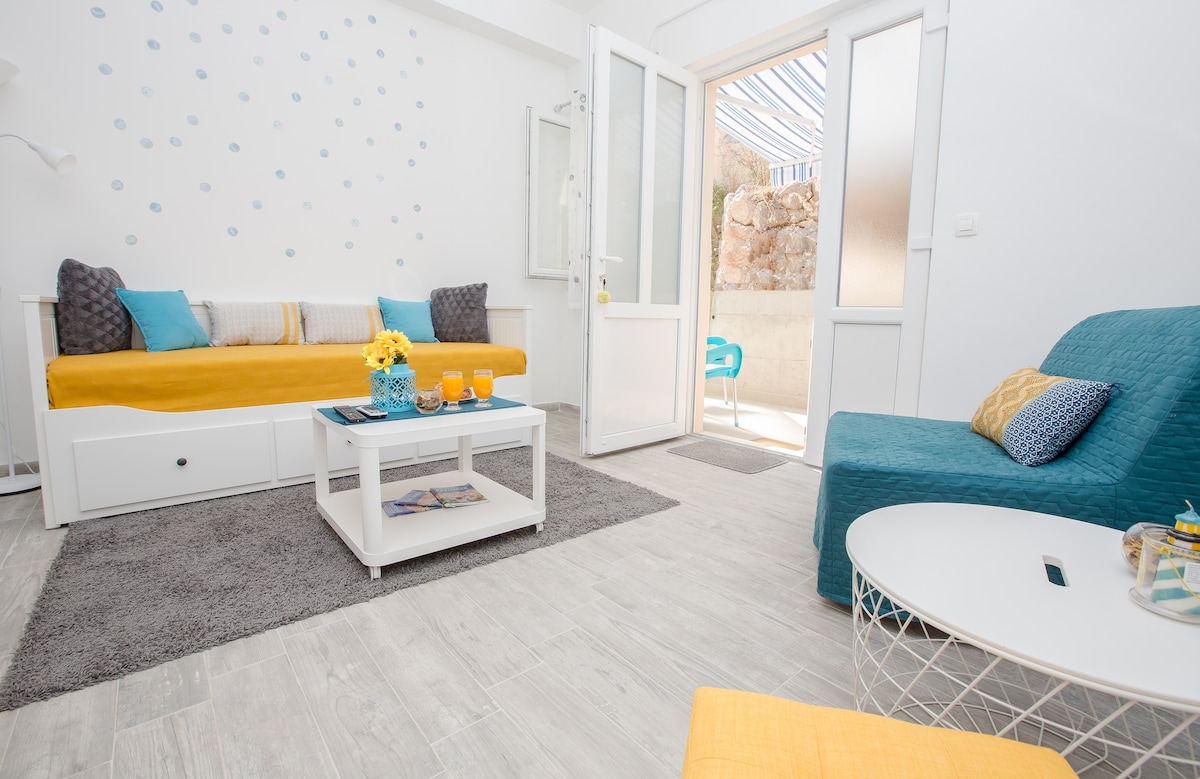 Studio apartment GIA is a newly built apartment located in Solitudo, a quiet and calm area of Dubrovnik. It includes a sofa-bed, cosy chair, kitchen, TV, outdoor desk and chairs and bathroom. This apartment is close to the beach (5-10 minute walk), bus station (5 minutes) and supermarket (5 minutes). Old City is about 15 minute drive away or one hour walk - don't worry, it's easy to reach with the public transport.