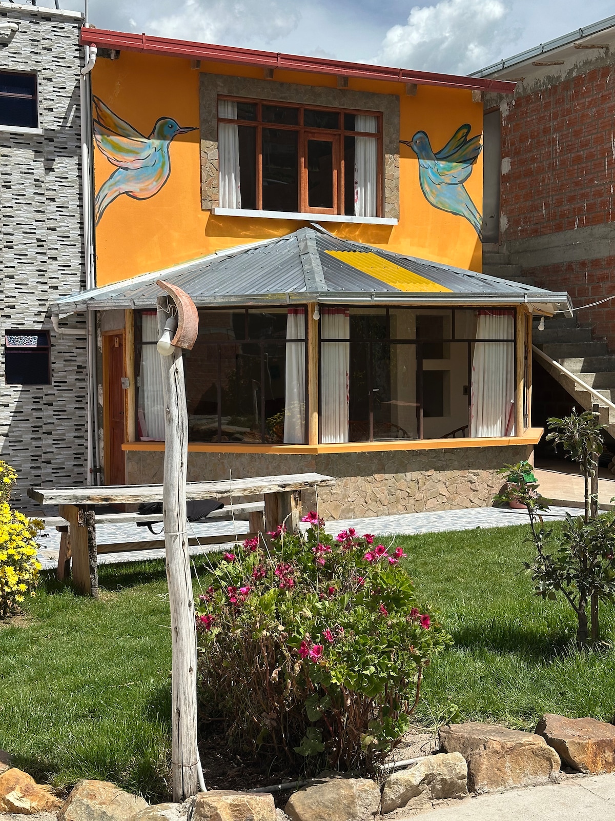 Ubicado en un lugar estratégico, con una arquitectura andina, donde podrás tener una vista al calvario de Copacabana y estarás a solo 2 minutos de la terminal y 3 minutos de la playa, ambientes relajados y confortables.