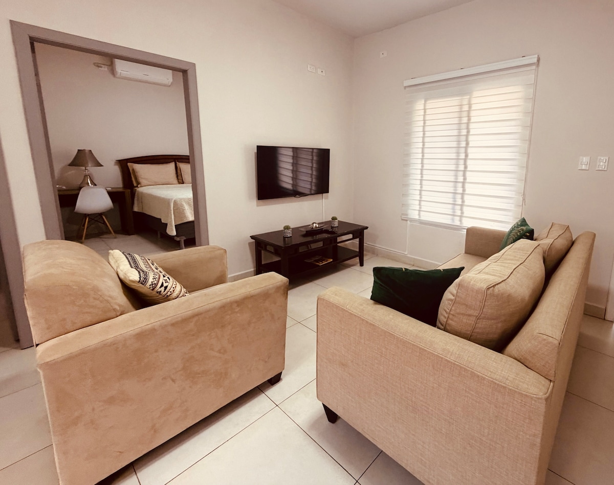 Apartamento acogedor, ideal para 2 personas! Situado a solo 10 minutos en coche del centro de la ciudad, tendrás fácil acceso a atracciones, restaurantes y tiendas. El apartamento ofrece una habitacion cómoda con 1 cama tamaño King con TV de pantalla plana,una cocina totalmente equipada , Incluye Wi-Fi rápido. Ubicado en un vecindario seguro, es perfecto para explorar o descansar. ¡Disfruta de una