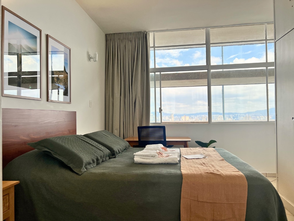 Stylish 50 m² apt. located at Bela Vista, has 24hr doorman. 2 bedrooms (only 1 with AC, and queen bed, the second one is quite small and can be used as an office, fitting a double-sized sofa-bed) and 1 bathroom. With amazing views from every window, it is a great place to work and relax. The private jet-tube at the balcony is a fantastic spot to enjoy the city views. Ideal for couples, professionals or small families looking for comfort, convenience, and one of the best views in the city.
