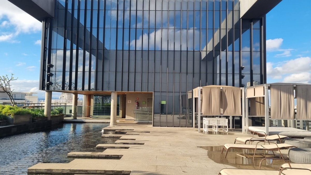 Piscina rooftop + vista incrível