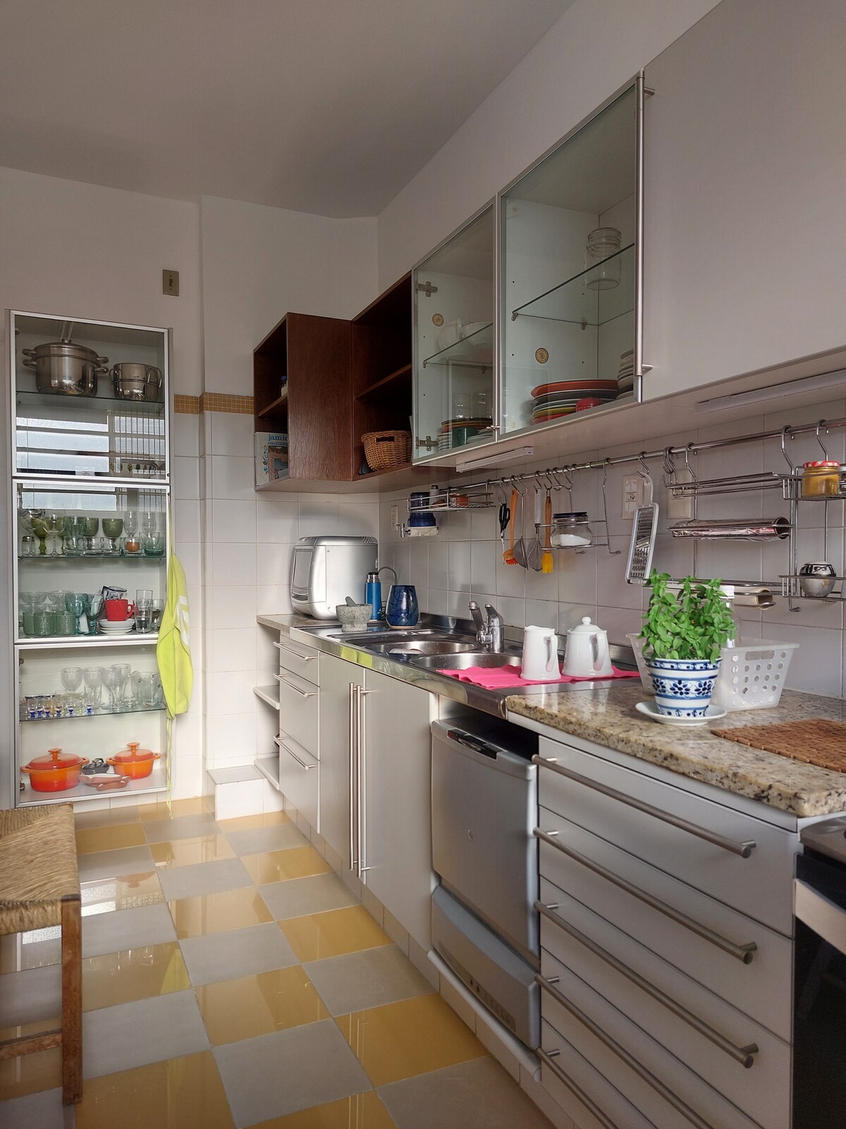 Uma casinha disfarçada de apartamento, super fofo, estilo retrô, mantendo características originais, porém atualizado para receber nossos hóspedes com conforto e praticidade. Um local único e charmoso, com quintal e churrasqueira. Localizado no coração de São Paulo, estamos a apenas alguns metros do metrô, em uma rua badalada, cheia de bares e restaurantes, mas totalmente silencioso e seguro, por estar longe da rua. Estamos no primeiro andar, e o acesso é feito por apenas 20 graus de escada.