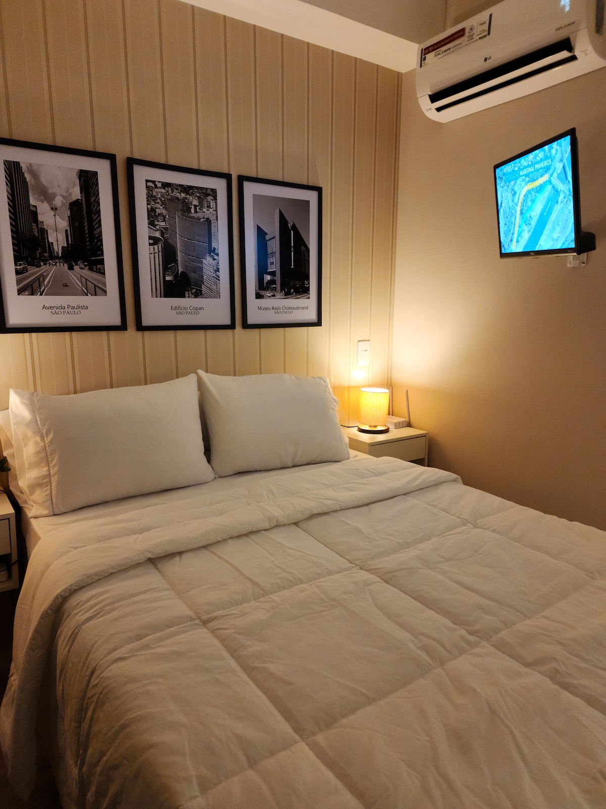 Experience One Eleven in Vila Olimpia. This modern apartment features large windows with breathtaking city views and natural light. The unit boasts 600 Mbps internet and a 4K HD TV. For total comfort, it has a Hot/Cold AC system: 27,000 BTU/h unit in the living room and 10,000 BTU/h in the bedroom. The bedroom is quiet and dark for a restful sleep. Impeccably maintained, you’ll be walking distance to top restaurants and business hubs—a safe, upscale retreat with a stunning urban backdrop.