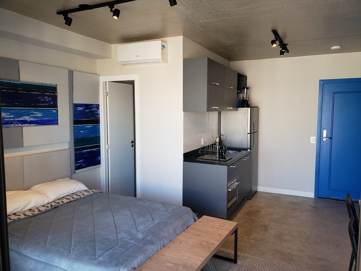 Relax in the best location of São Paulo, between Jardins and Pinheiros. This newly opened studio is a 5-minute walk to the Oscar Freire subway station, in a new building with all the infrastructure for a quiet and comfortable stay. It is on top of a bakery with artisan bread and across the street from a supermarket. The building has coworking and coliving space, laundry room, gym, rooftop pool, and a 24-hour doorkeeper. Wi-Fi 450Mbps.