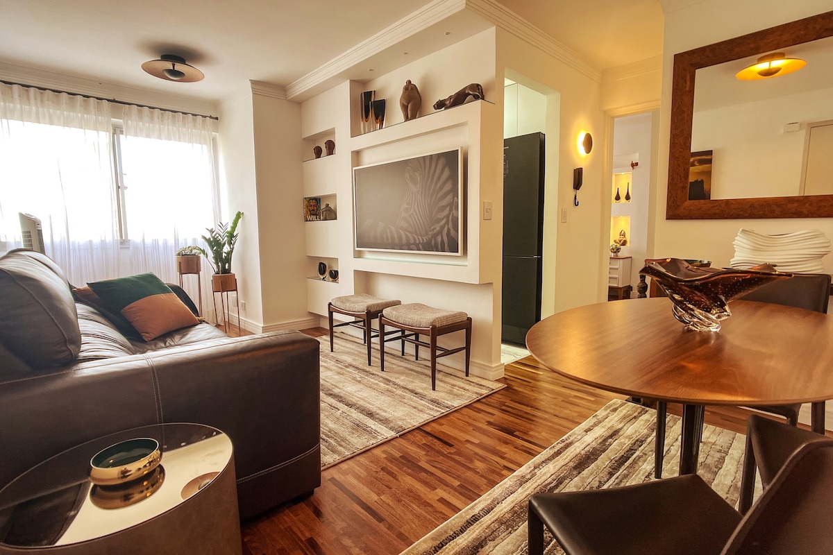 Confy design Spa apartment. You'll have your onw private sauna and ofurô with an incredible view of the São Paulo DownTown Dedicated exclusively for guests. Área privativa de 82m2 e se localiza em um edifício de construção nova, da construtora Cyrela, com acabamento em alto padrão, com segurança e portaria 24h. Há apenas 50 metros de distância há um supermercado que funciona 24h por dia, de domingo à domingo. O metrô fica na esquina, há apenas 100 metros do edifício.